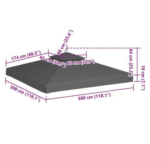 Cantitatea minima pentru "Acoperiș de pavilion, 2 niveluri, gri taupe, 3x3 m, 310 g/m²" este 1.