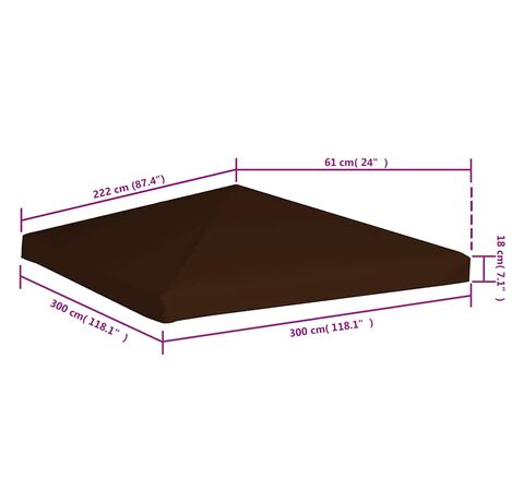 Acest acoperiș de pavilion de rezervă este fabricat din țesătură durabilă de poliester cu înveliș din PVC, fiind astfel impermeabil. Acoperișul de foișor va asigura protecție împotriva soarelui, ploii și altor condiții meteorologice nefavorabile. Acest parasolar are colțuri consolidate pentru o rezistență sporită.