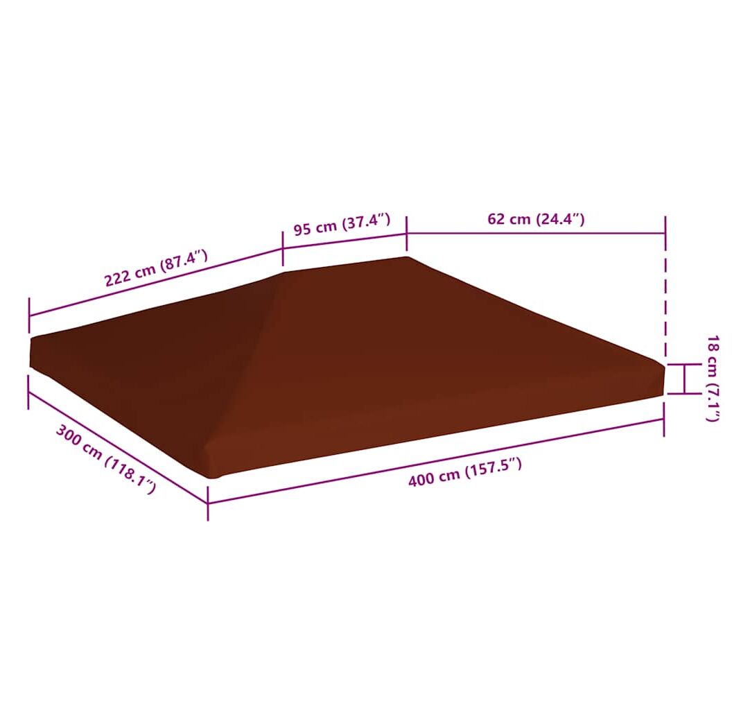 Acoperiș pentru pavilion, 310 g/m², cărămiziu, 3 x 4 m