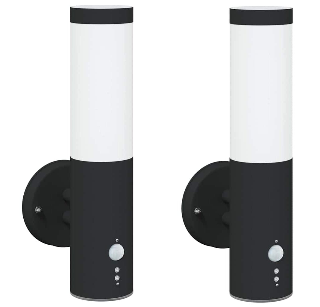 Aplica de perete cu senzor 2 bucăți Negru Oțel inoxidabil IP44