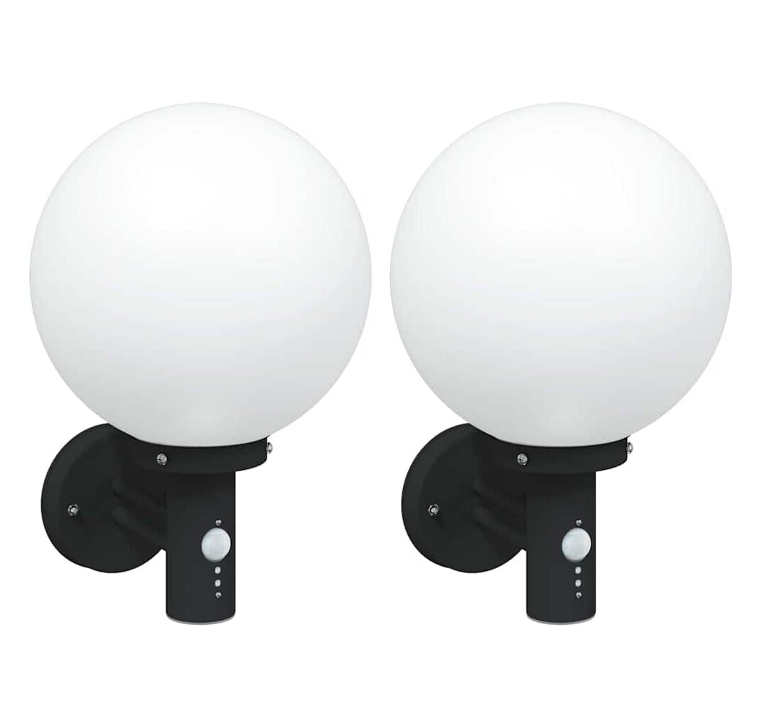 Aplice de Perete Exterioare cu Senzor 2 piese Negru Oțel Inoxidabil IP44