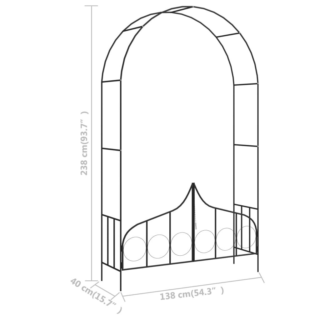 Construit din tub de fier vopsit electrostatic, această pergolă este stabilă și rezistentă la intemperii. Designul porții duble creează o notă de intimitate și poate fi folosită pentru a închide o zonă.