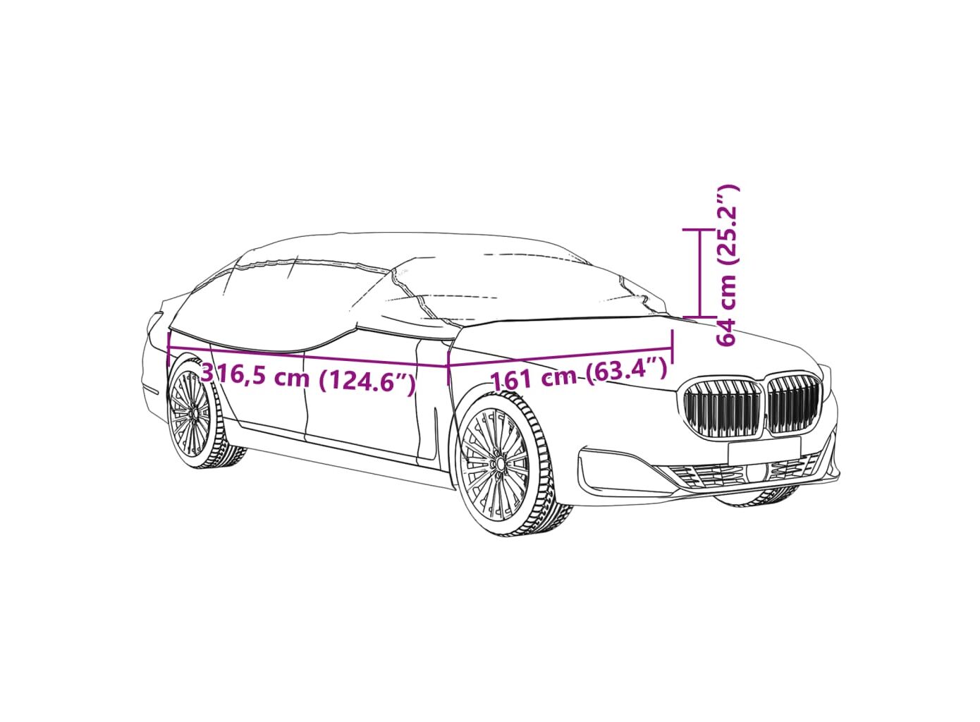 Această husă auto parțială vă protejează vehiculul împotriva razelor UV, zăpezii, ploii, înghețului, prafului, frunzelor căzute, poluării industriale și excrementelor de păsări, fiind ideală pentru utilizare în interior și exterior.