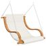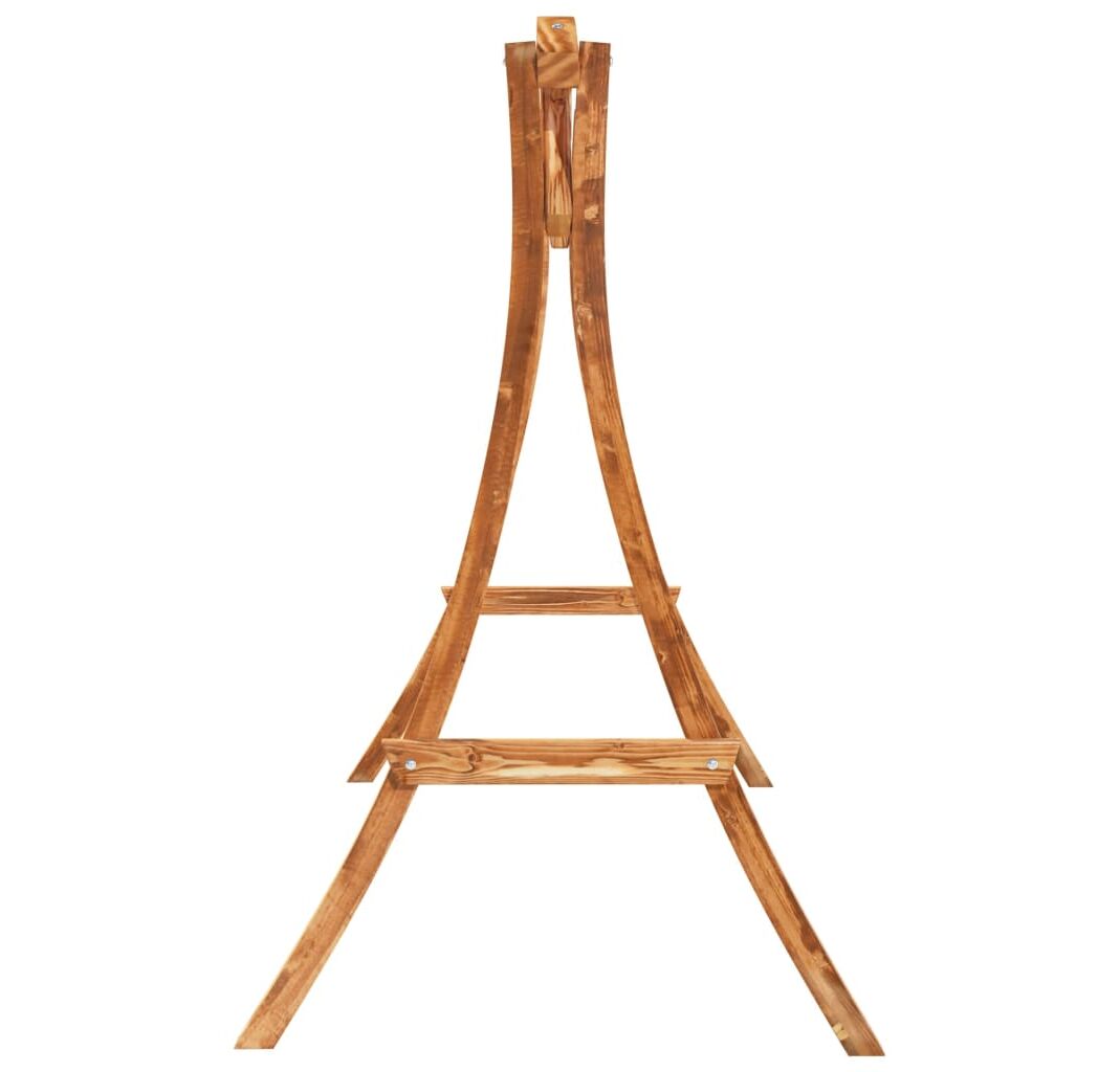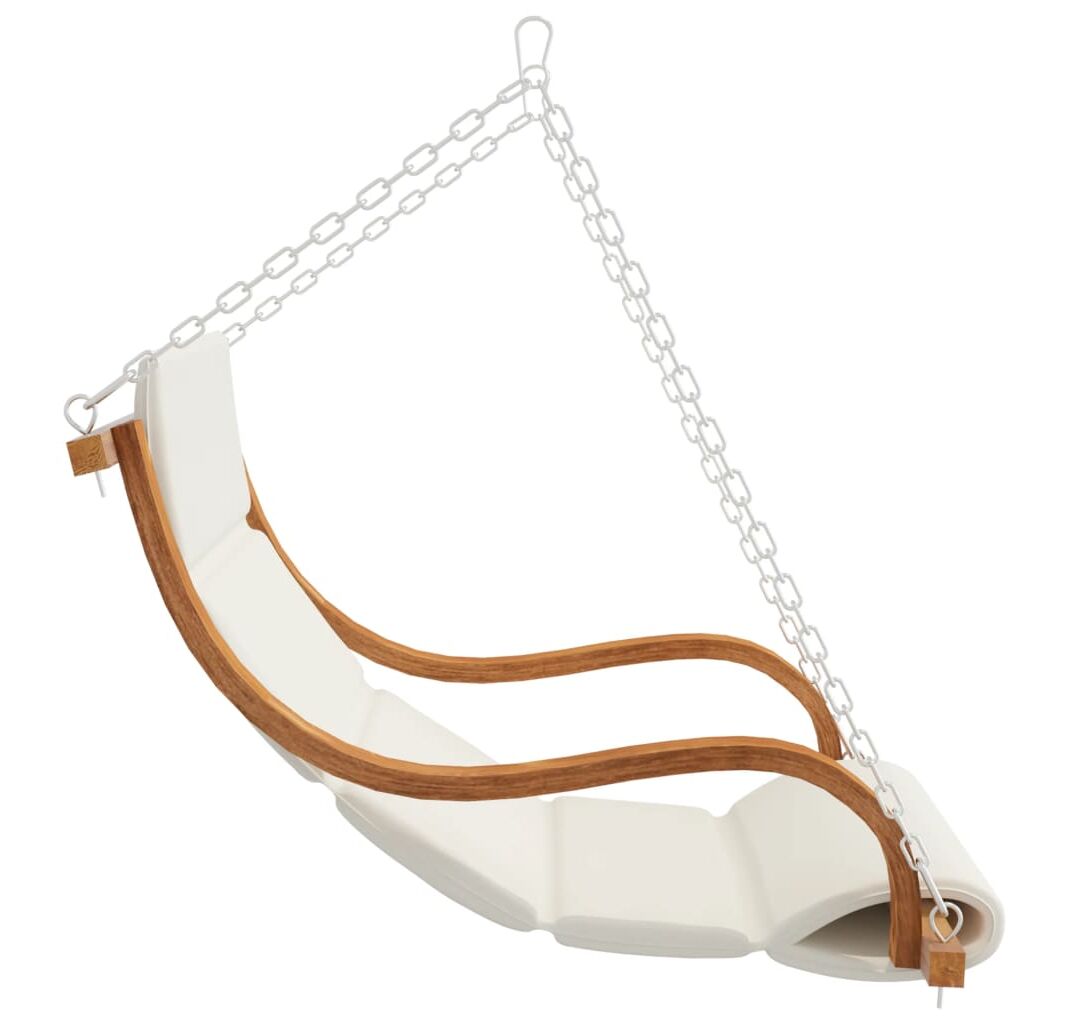 - Cadru din lemn masiv de molid: Acest scaun hamac este realizat din lemn masiv de molid. Lemnul masiv de molid este un lemn de greutate redusă, stabil și rezistent la putrezire. Are o textură fină, uniformă și o granulație constantă dreptă. Finisajul din lemn de tec îi conferă un aspect de lemn închis la culoare.
