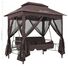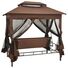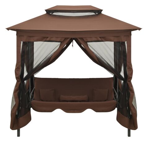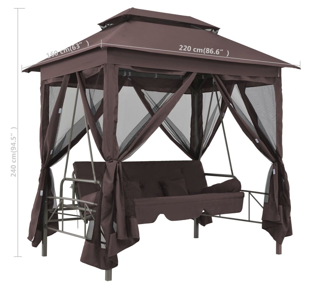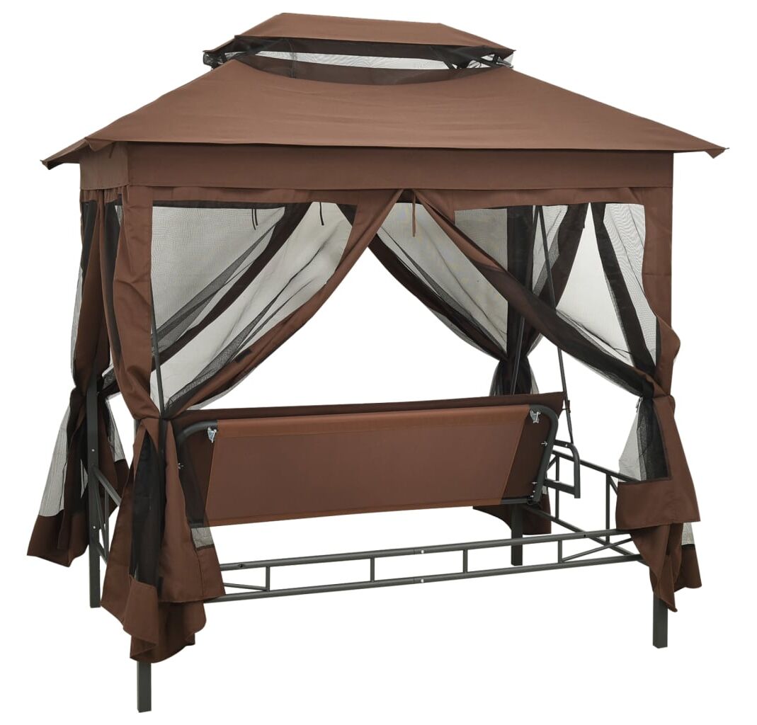 Datorită perdelelor cu elemente de fixare prin bandă autoadezivă cu arici, puteți închide cu ușurință toate cele 4 părți pentru a crea o zonă împrejmuită. Plasa închisă este perfectă pentru a ține la distanță insectele zburătoare și pentru a vă oferi un loc retras. Balansoarul se poate transforma în pat. Două perne dreptunghiulare și 2 perne cilindrice sunt incluse pentru un plus de confort.