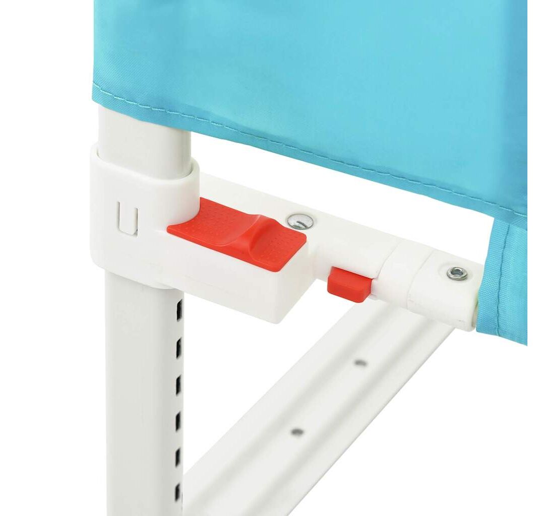 Fabricată din țesătură de poliester lavabilă și tub metalic ușor, această balustradă de pat este robustă, durabilă și ușor de curățat. Este echipată cu un buton pe fiecare parte, astfel încât să o puteți conecta cu ușurință. În plus, înălțimea protecției de pat poate fi reglată liber pentru a găsi cea mai sigură înălțime. Vă rugăm să rețineți: această balustradă de pat este potrivită pentru copiii cu vârsta cuprinsă între 18 luni și 5 ani. Poate fi folosită pentru majoritatea paturilor cu o grosime a saltelei de 3-25 cm, cu excepția paturilor supraetajate, paturilor pentru bebeluși, paturilor cu apă sau a paturilor cu saltea gonflabilă.