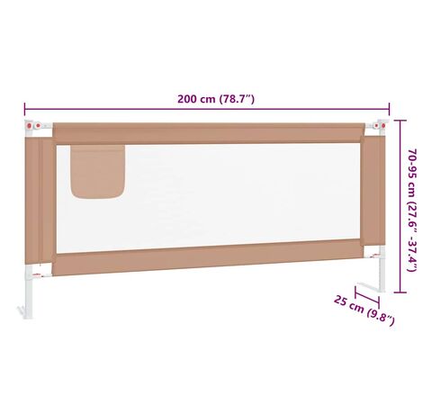 Balustradă de protecție pat copii, gri taupe, 200x25 cm, textil