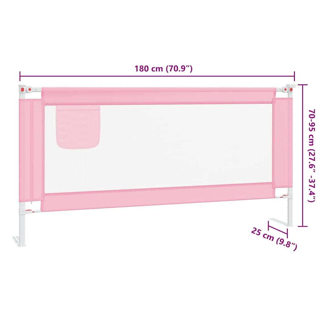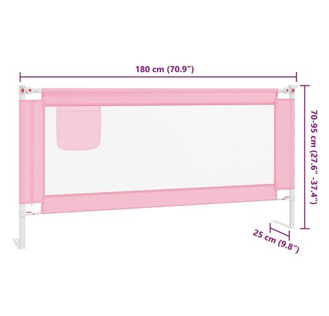 Balustradă de protecție pat copii, roz, 180x25 cm, textil