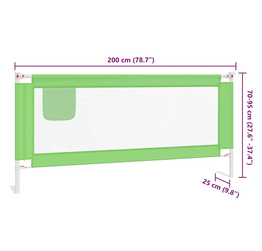 Balustradă de protecție pat copii, verde, 200x25 cm, textil