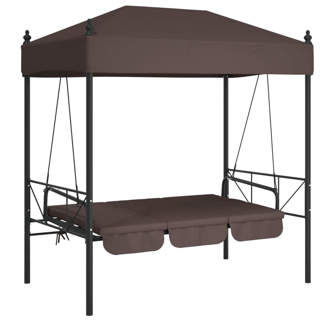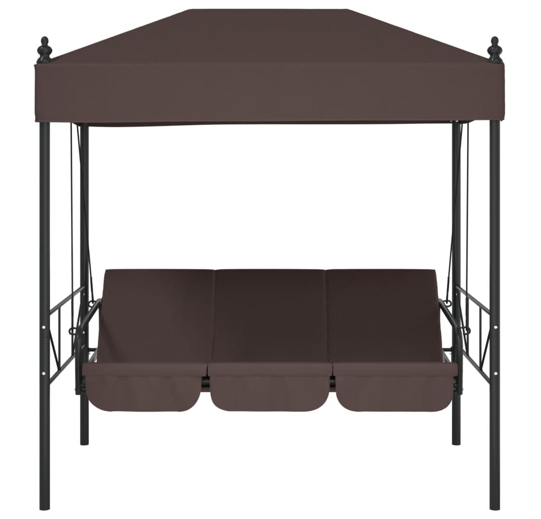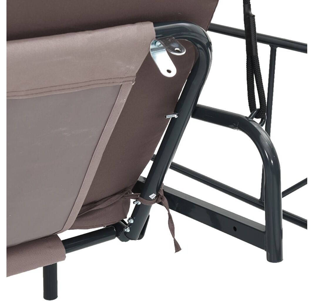 - Cu baldachin: Această bancă balansoar vine cu un baldachin din poliester care vă poate proteja pe deplin împotriva razelor UV și a ploii fine, atunci când stați în balansoar.