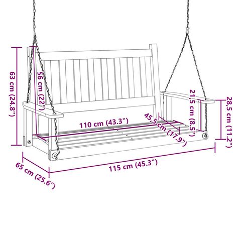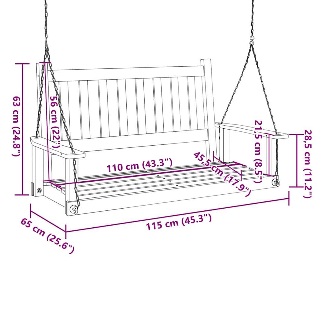 - Dimensiuni bancă balansoar: 115 x 65 x 63 cm (l x ad. x î)
