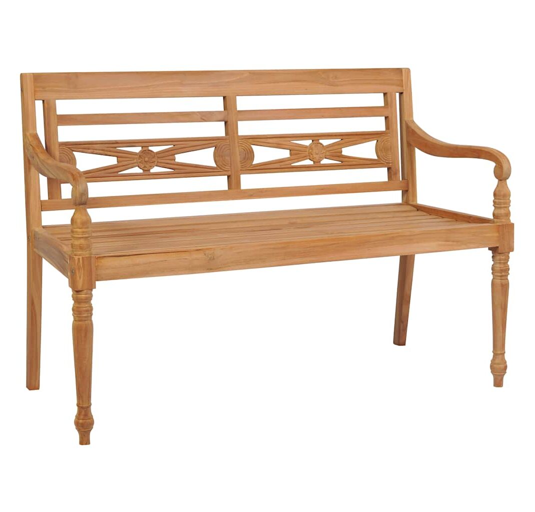Bancă Batavia cu pernă bej, 120 cm, lemn masiv tec