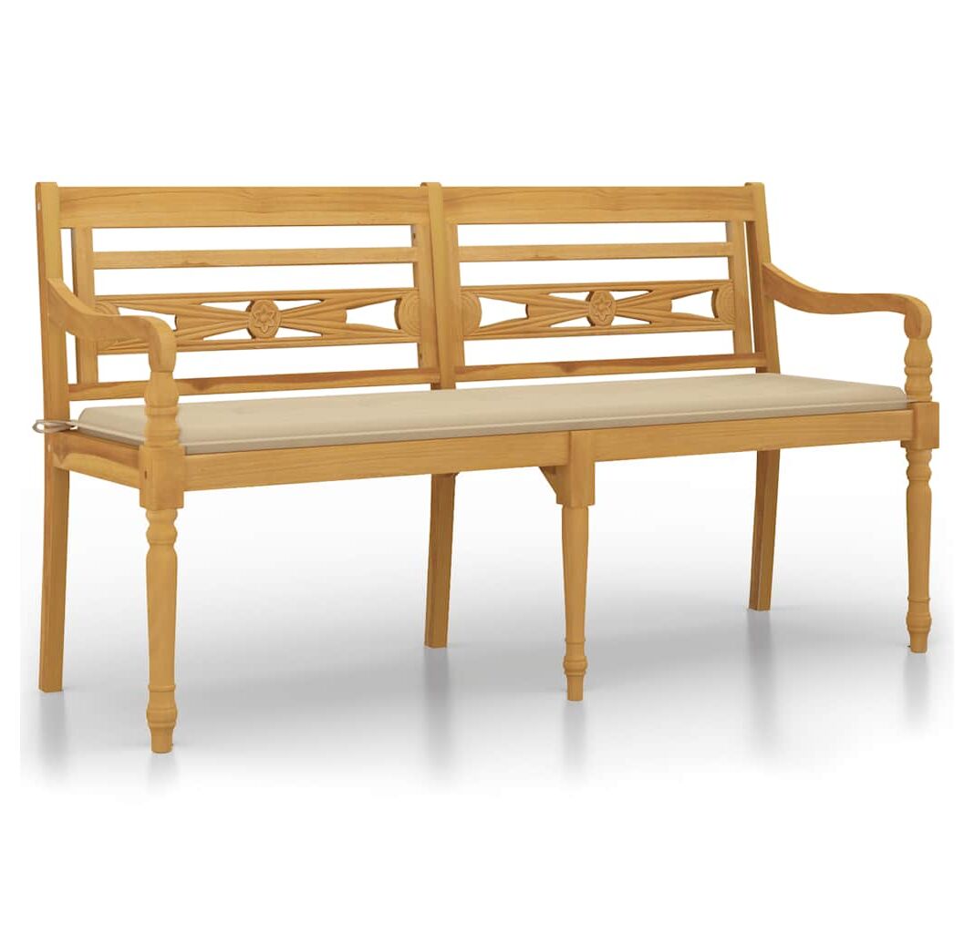 Cantitatea minima pentru "Bancă Batavia cu pernă bej, 150 cm, lemn masiv de tec" este 1.