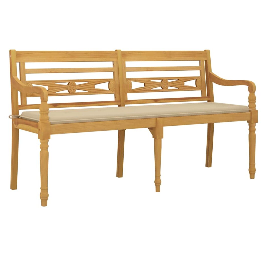 Bancă Batavia cu pernă bej, 150 cm, lemn masiv de tec