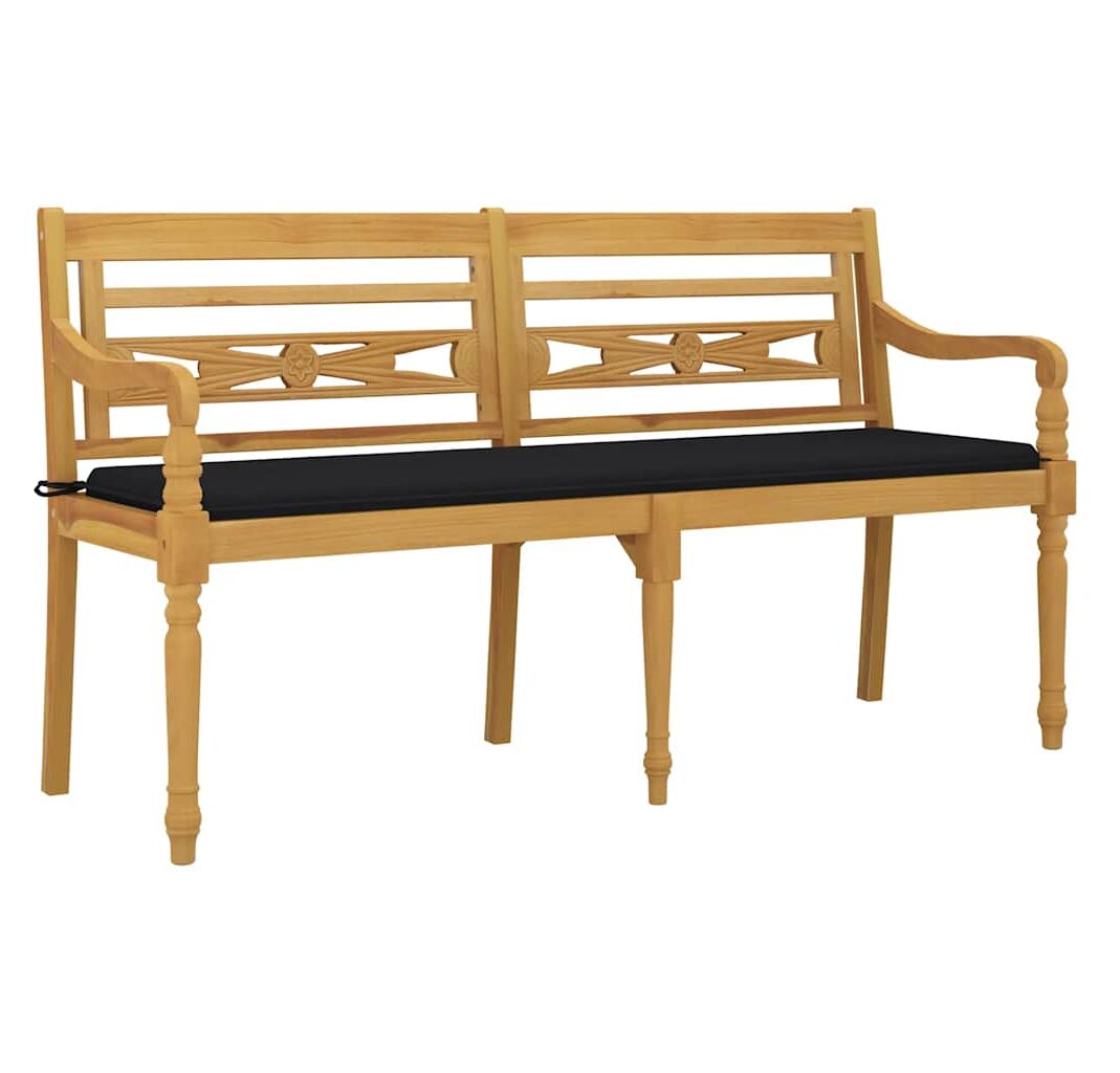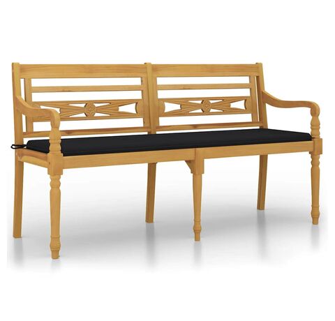 Bancă Batavia cu pernă neagră, 150 cm, lemn masiv de tec