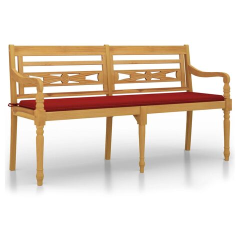Bancă Batavia cu pernă roșie, 150 cm, lemn masiv de tec