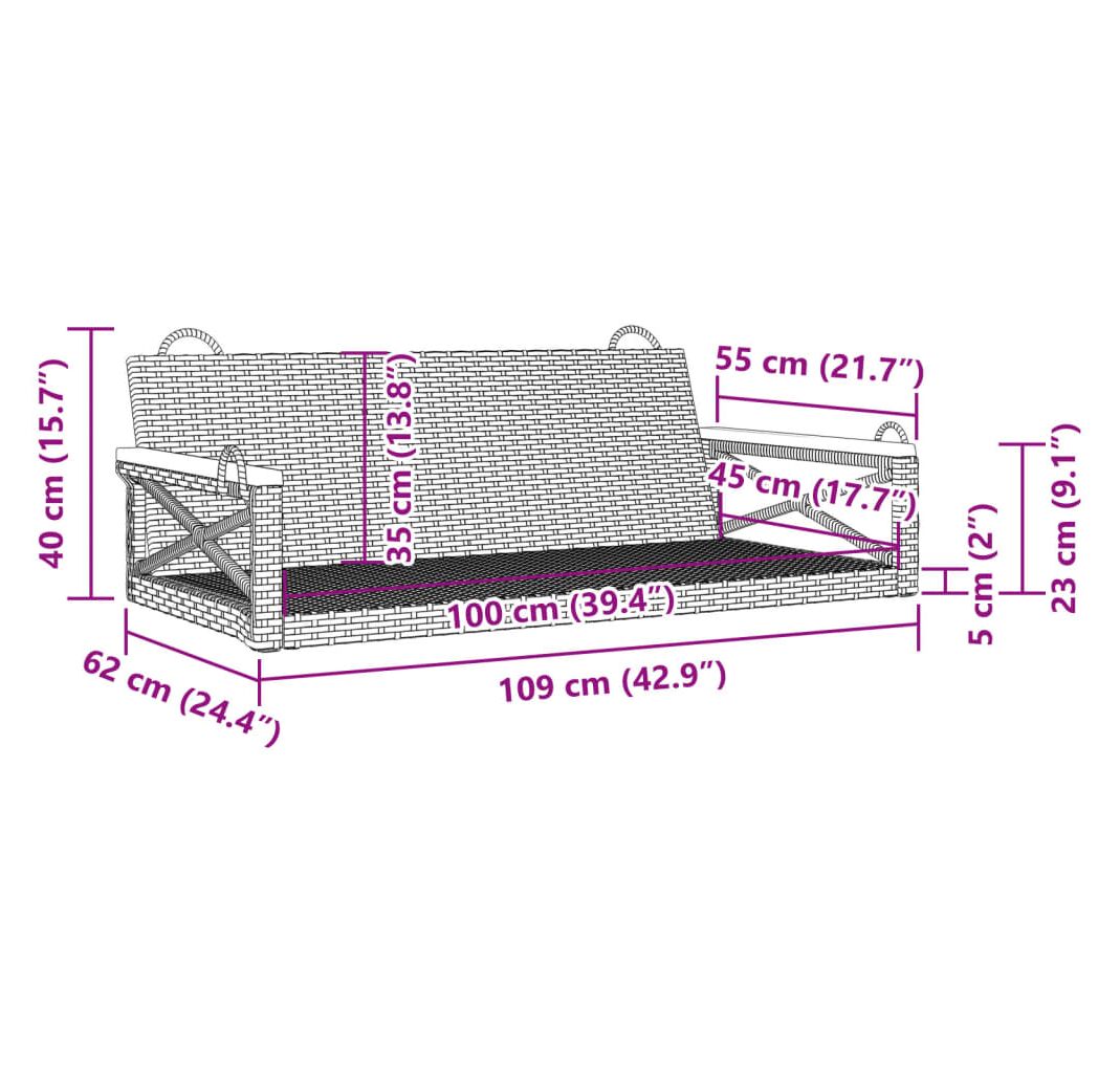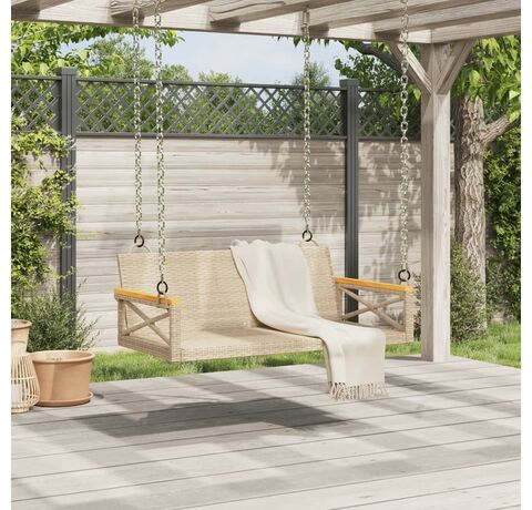 Bancă de balansoar, bej, 109x62x40 cm, poliratan