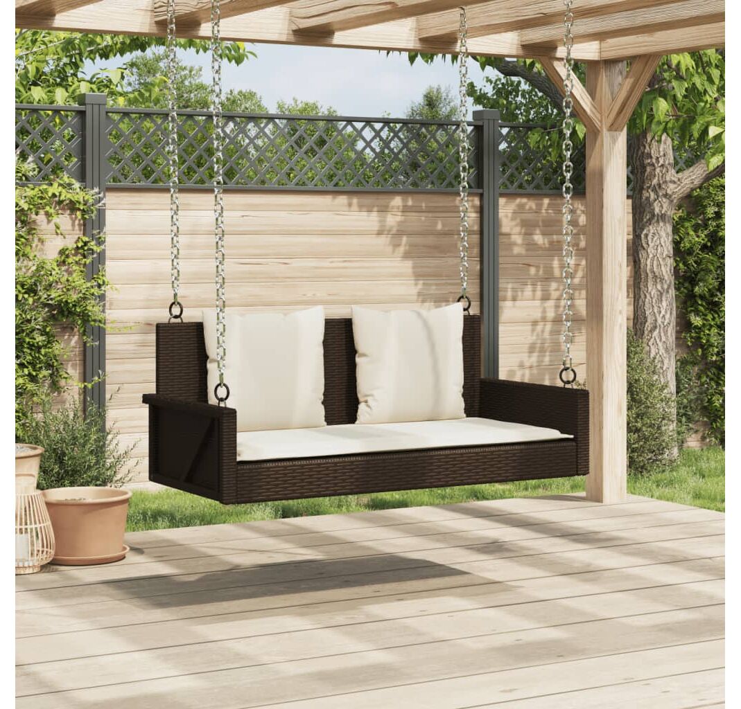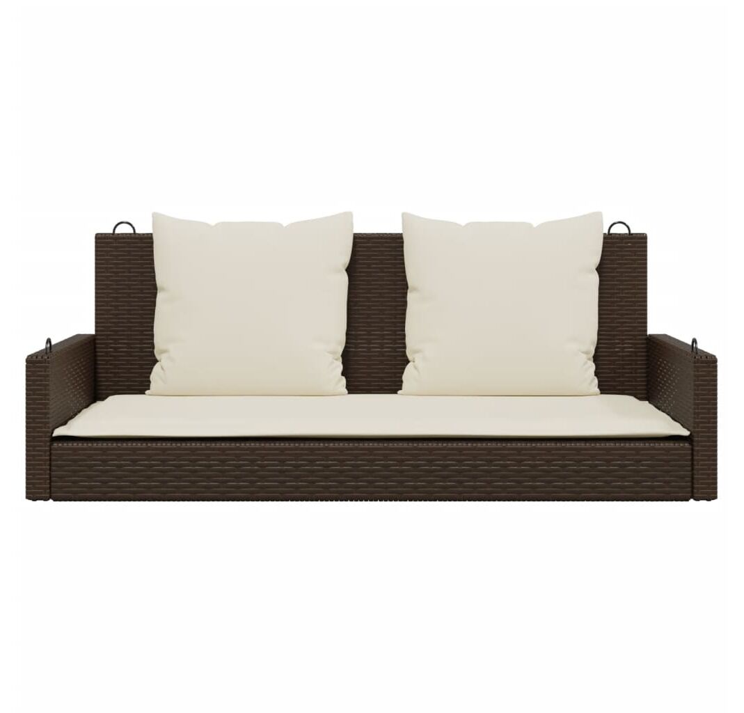 Bancă de balansoar cu perne, maro, 119x56x48 cm, poliratan