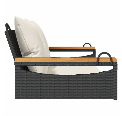 Ratan PE, oțel vopsit electrostatic, lemn masiv de acacia cu finisaj în ulei