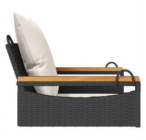 Ratan PE, oțel vopsit electrostatic, lemn masiv de acacia cu finisaj în ulei