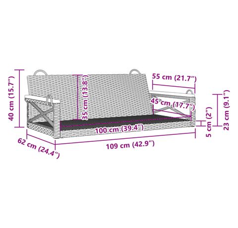 - Pachetul de livrare include doar o bancă balansoar. Cadrul leagănului și lanțurile pentru suspendare nu sunt incluse.