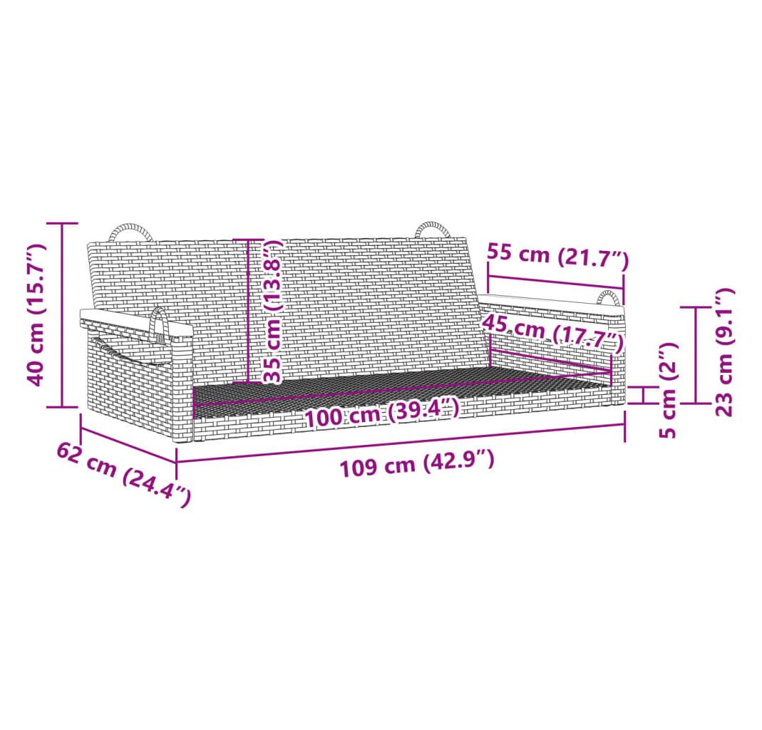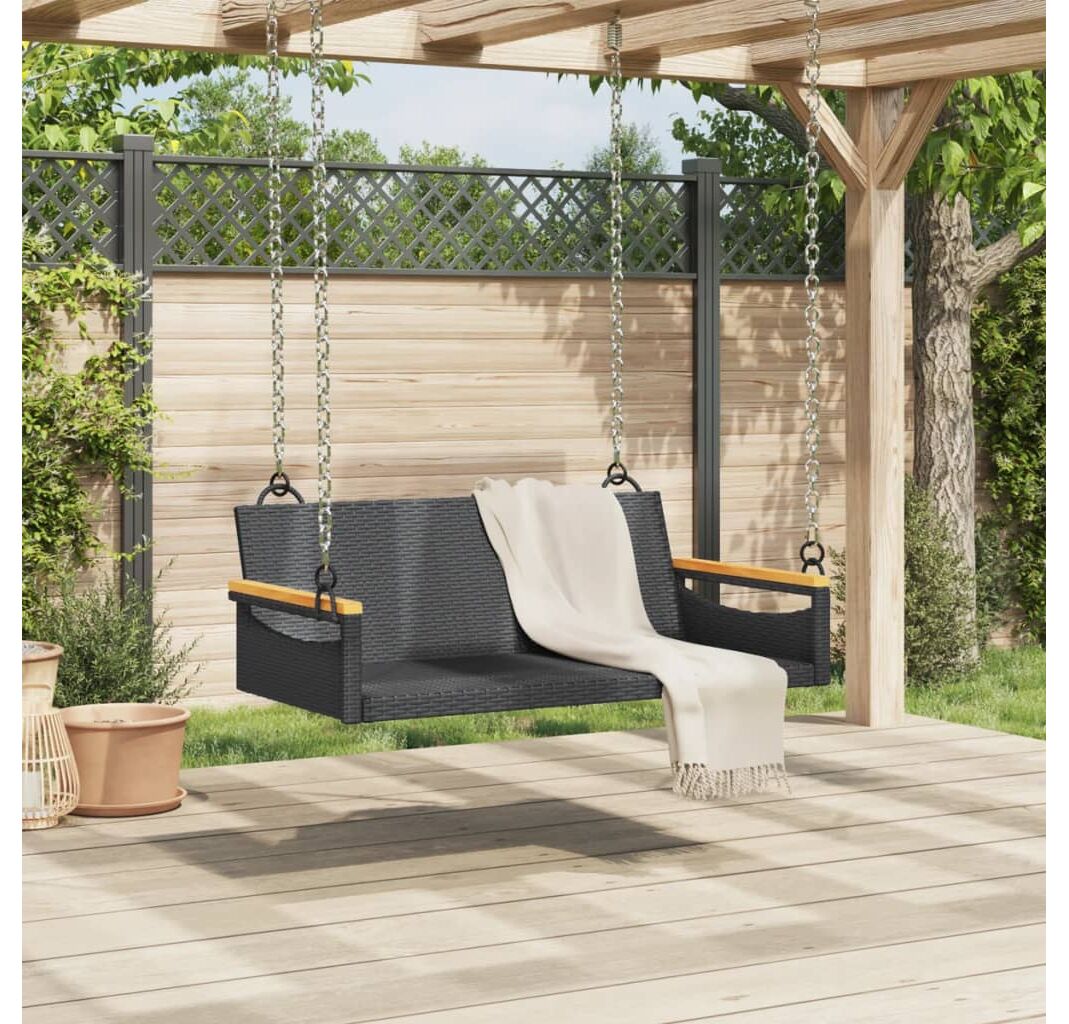 Bancă de balansoar, negru, 109x62x40 cm, poliratan