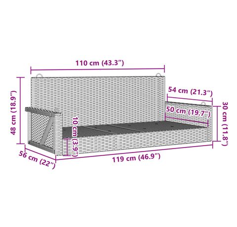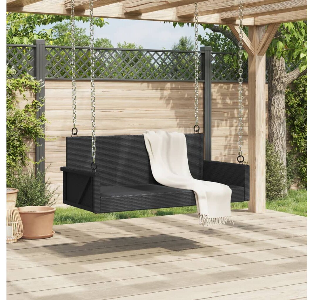 Bancă de balansoar, negru, 119x56x48 cm, poliratan