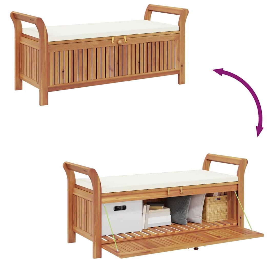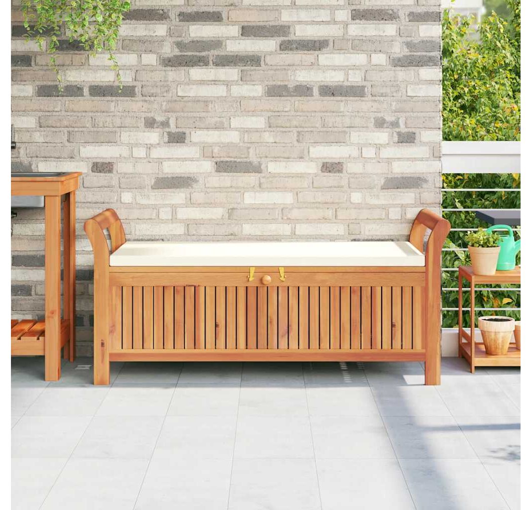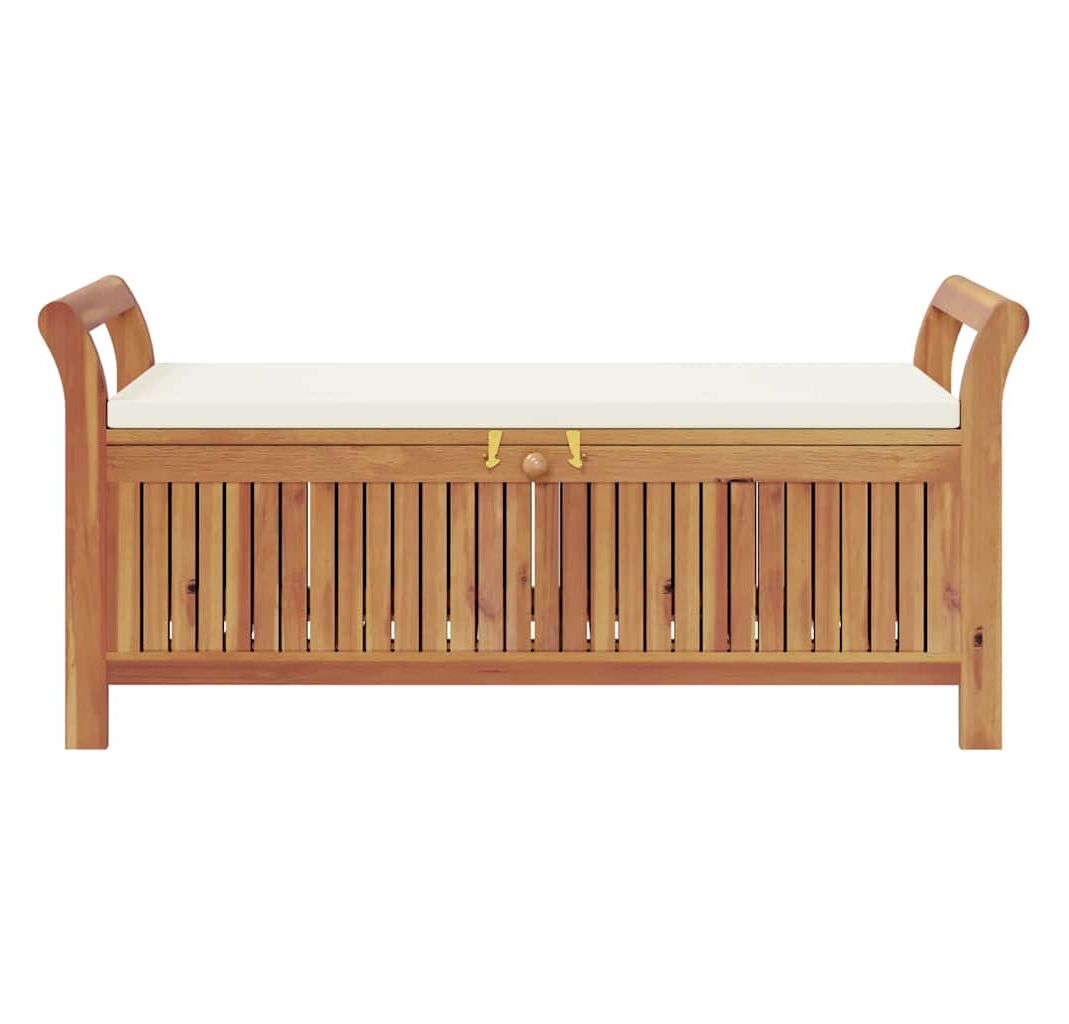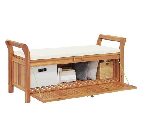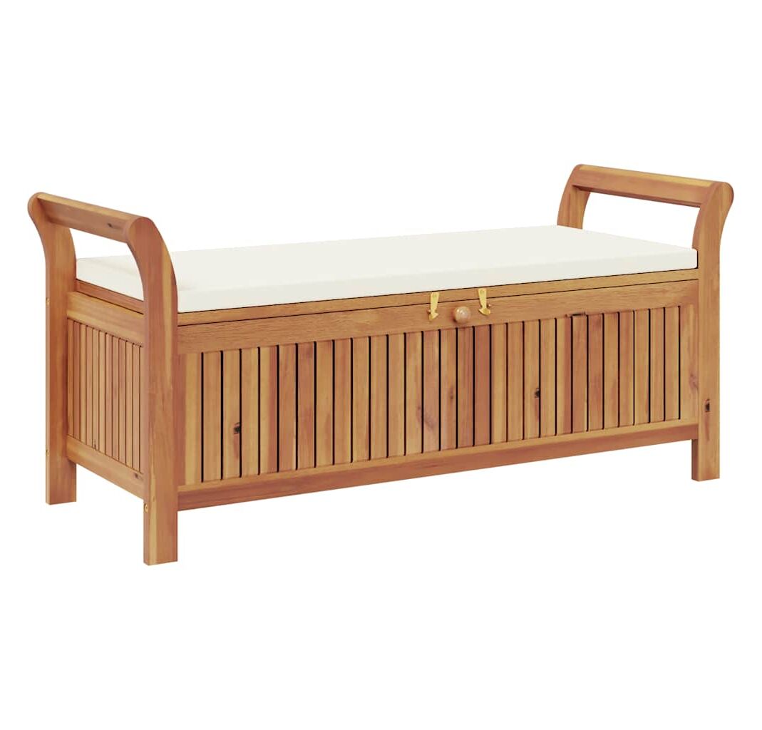 Bancă de depozitare cu pernă, 126 cm, lemn masiv de acacia