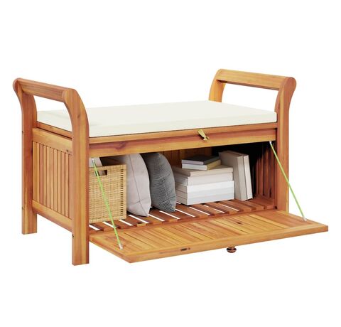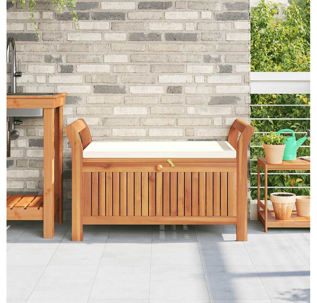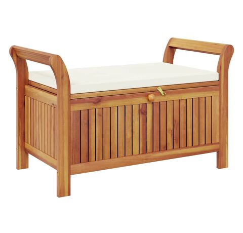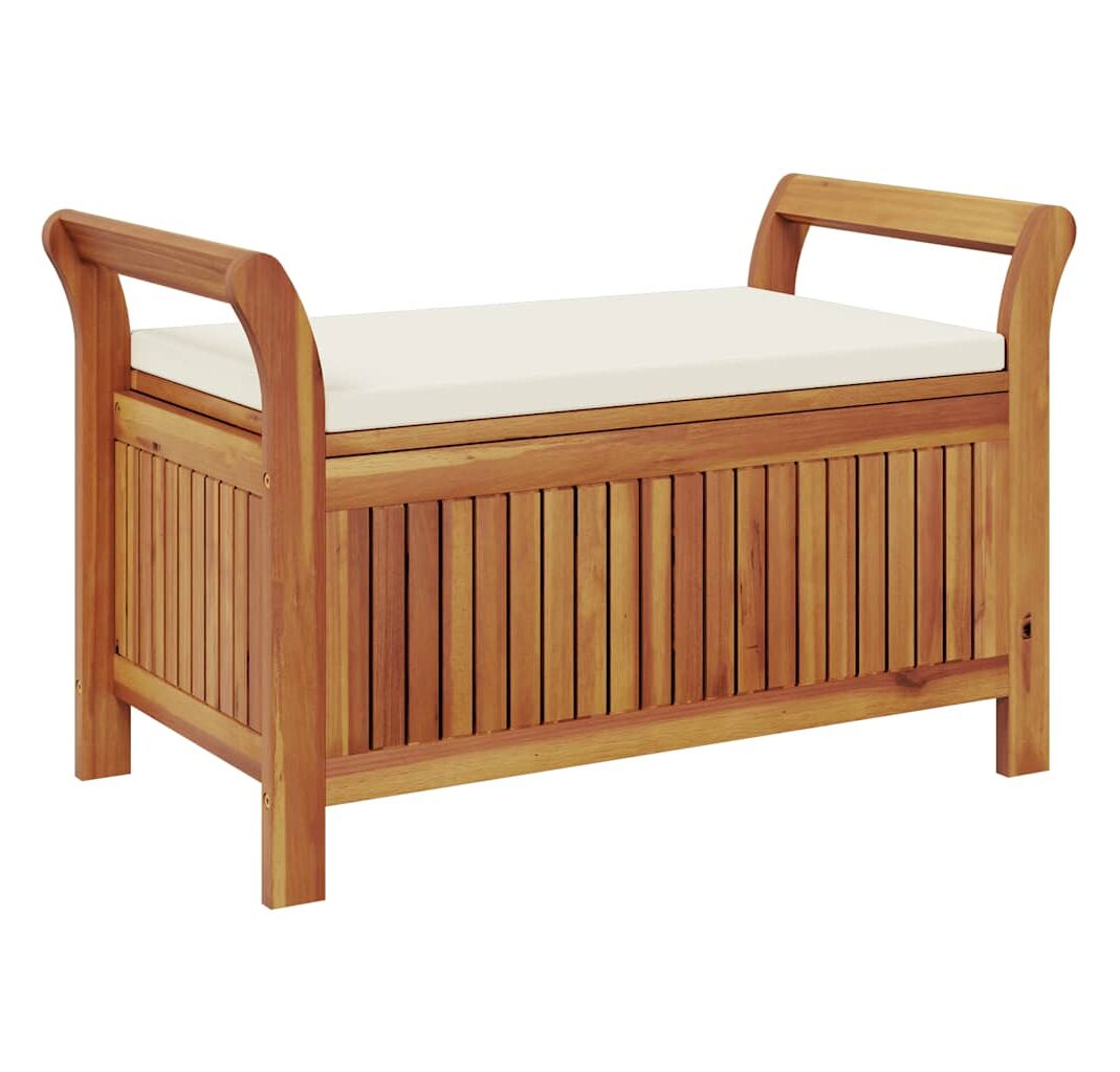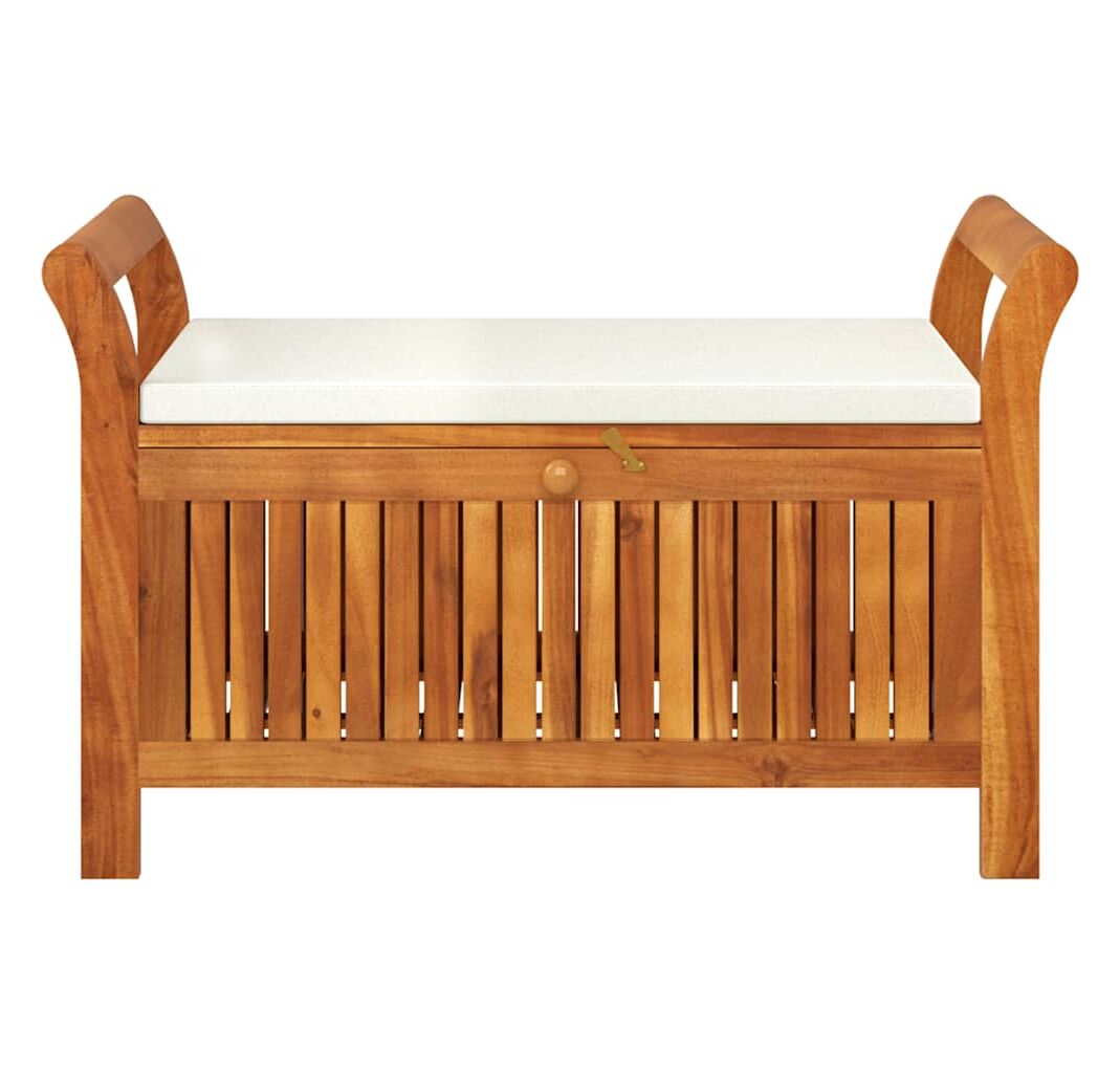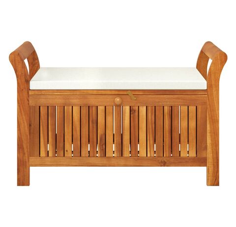 Bancă depozitare grădină, cu pernă, 91 cm, lemn masiv de acacia