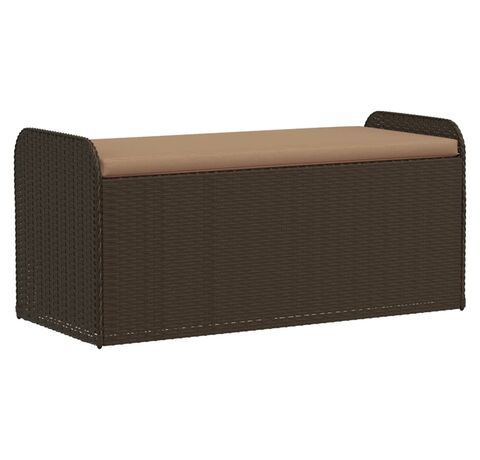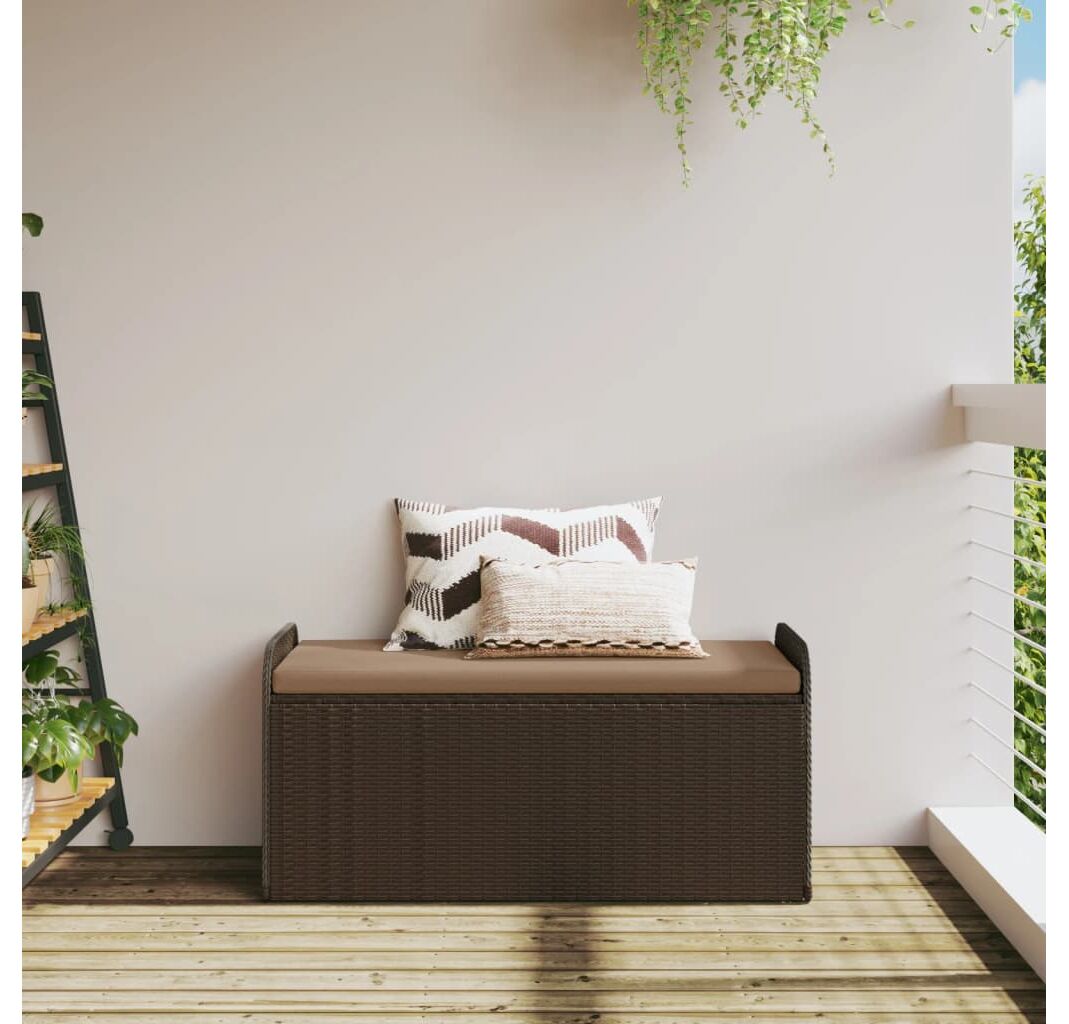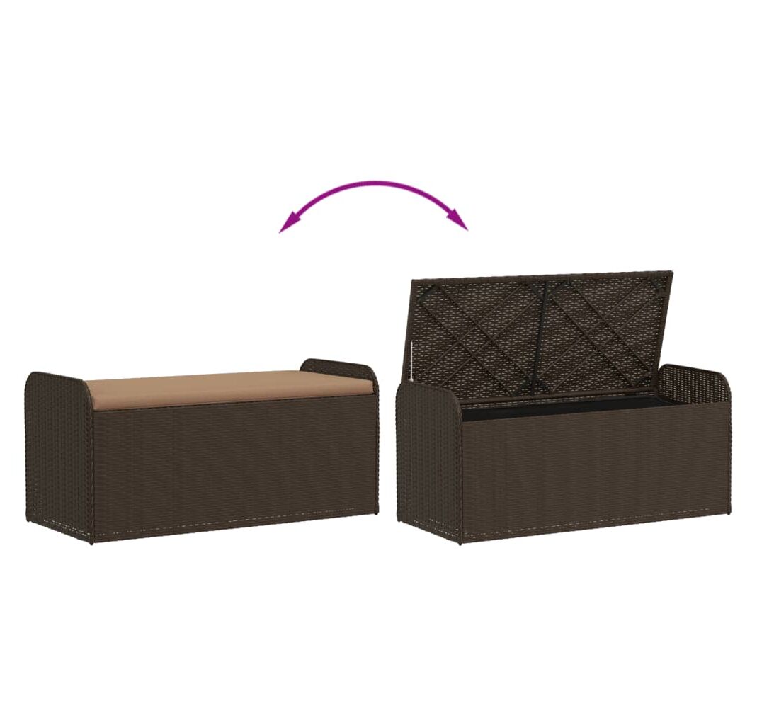 Bancă de depozitare cu pernă, maro, 115x51x52 cm, poliratan