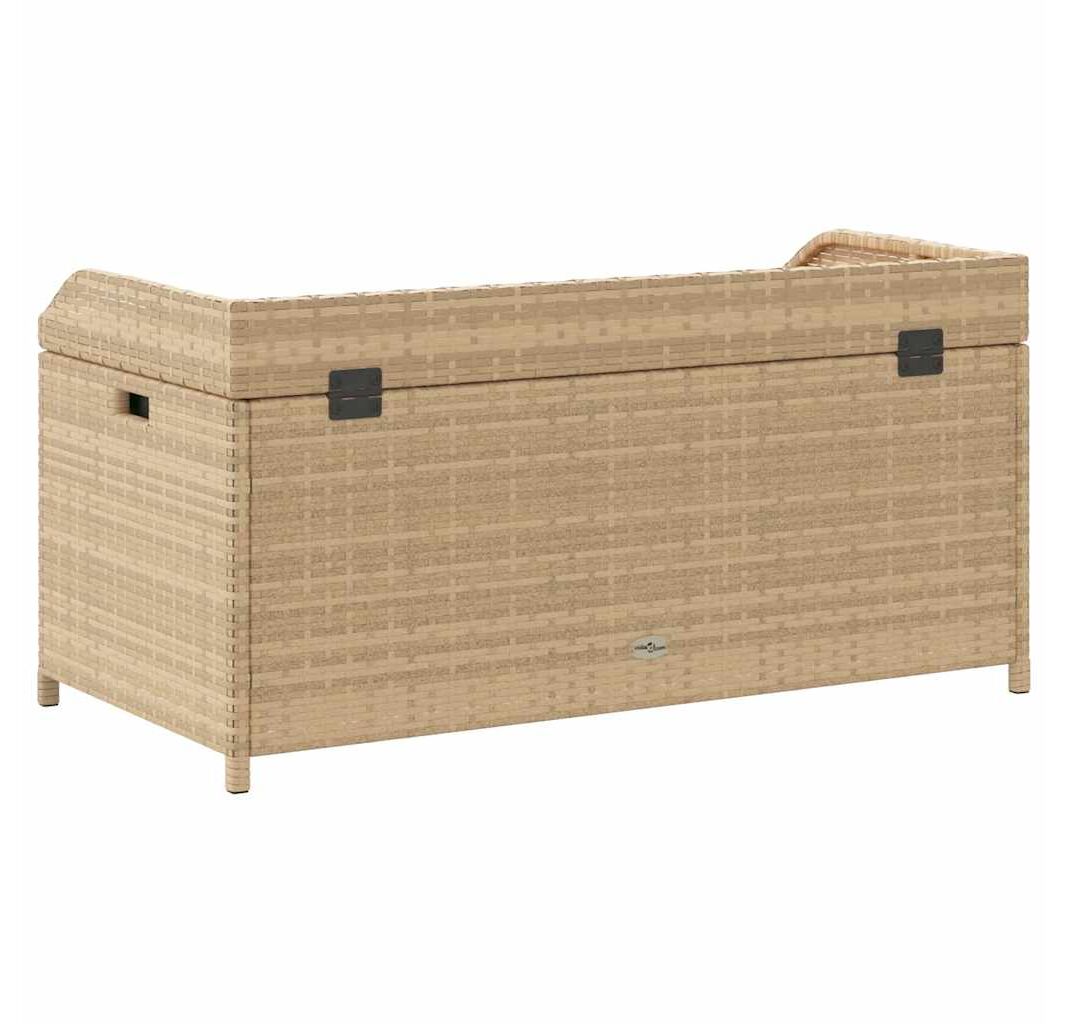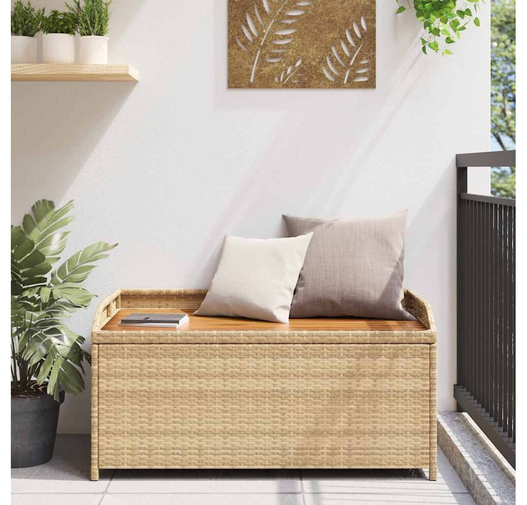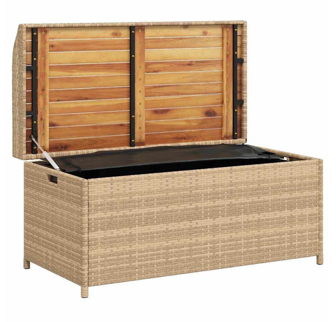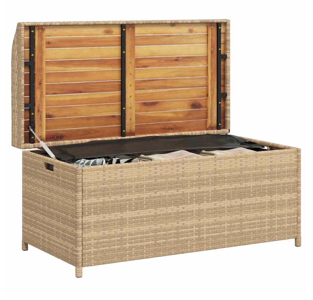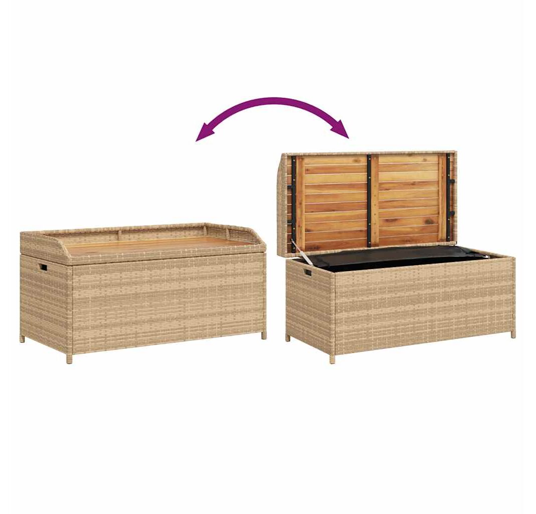 Bancă depozitare grădină, bej mix 100x50x52 cm poliratan/acacia