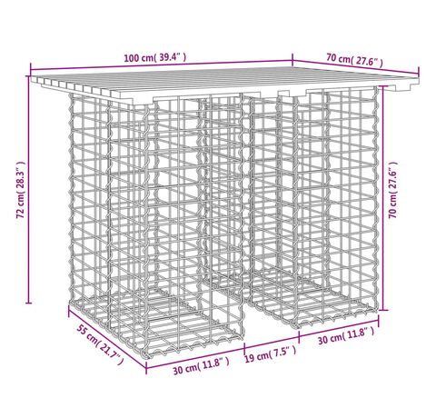 - Baza robustă și stabilă: Această bancă de exterior are o bază de coș de gabion din oțel galvanizat, care este proiectată pentru a fi umplută cu pietre și pietriș pentru o frumusețe suplimentară. Grila de plasă este construită prin sudarea firelor transversale și longitudinale la fiecare intersecție, pentru o stabilitate suplimentară.
