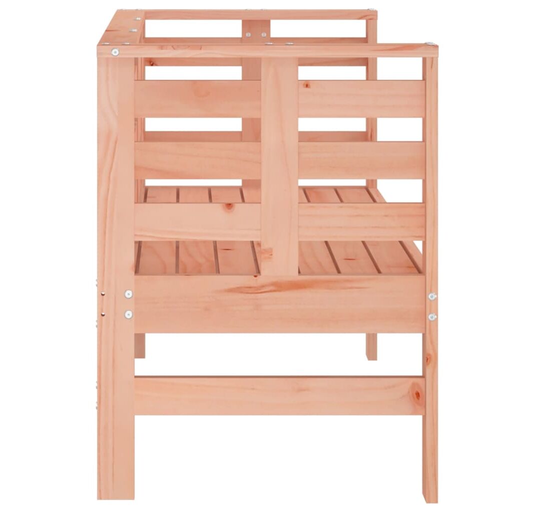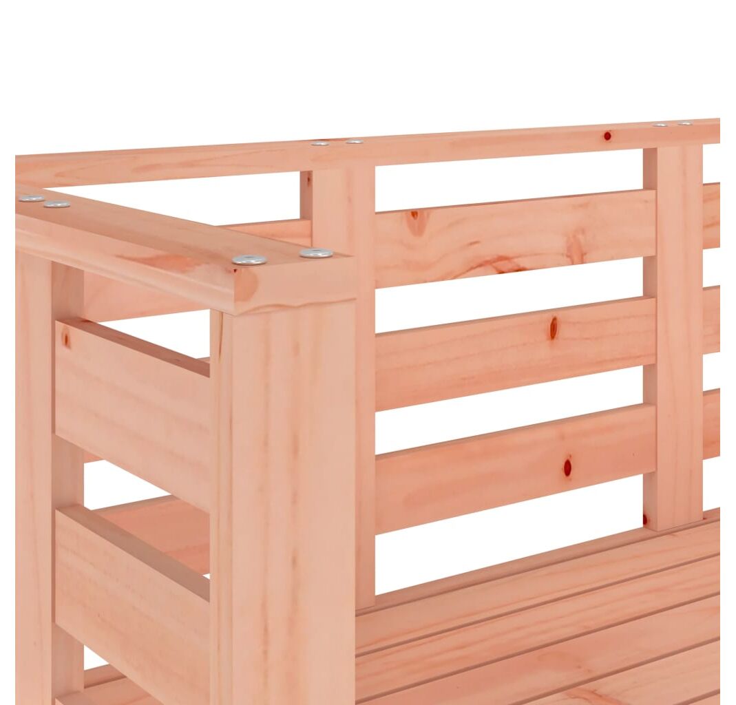- Lemn masiv de douglas: Banca de exterior este realizată din lemn masiv de douglas, pentru rezistență și stabilitate. Lemnul masiv de douglas este un lemn foarte durabil, care funcționează bine pentru piese de exterior. Lemnul de douglas este, de asemenea, suficient de rezistent pentru a avea nevoie de îngrijire minimă, chiar și sub influența intemperiilor.