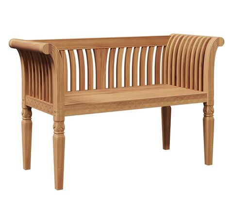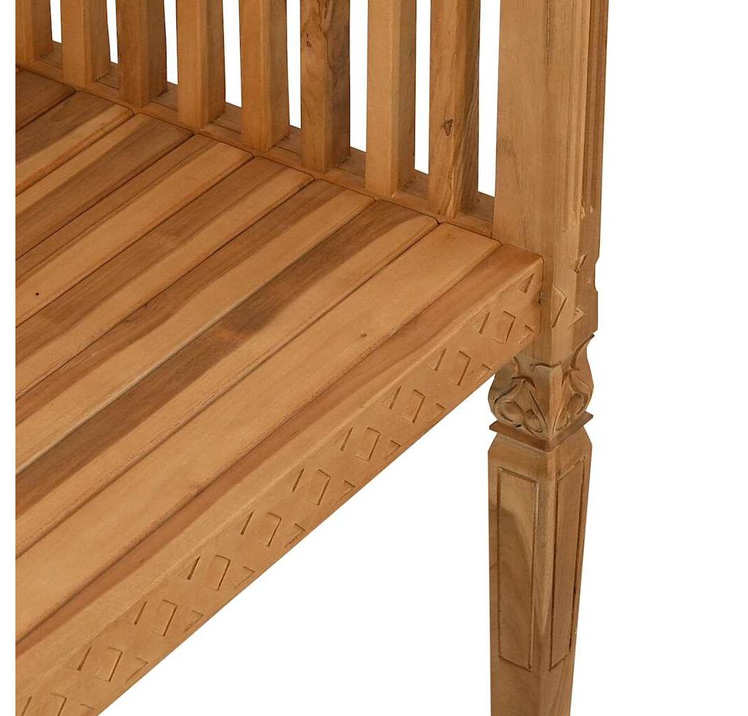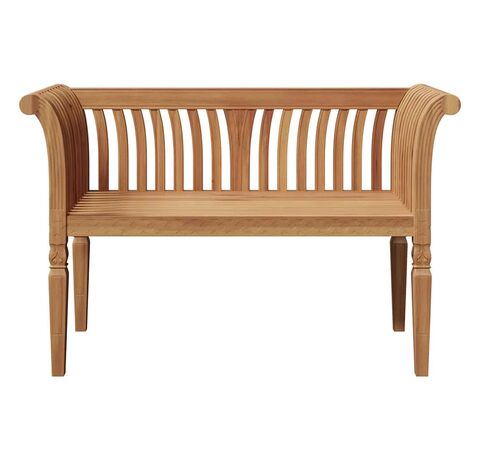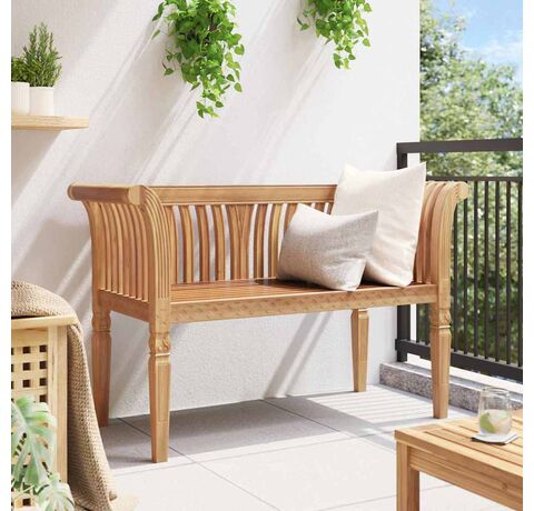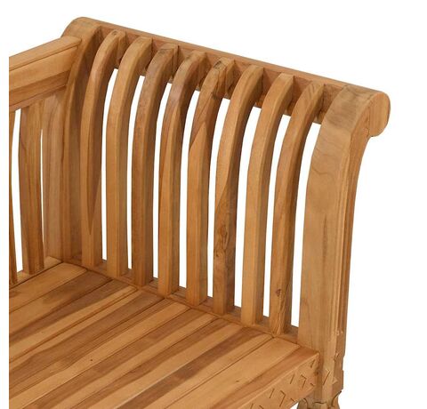 Această frumoasă bancă de grădină e făcută pentru confort și un aspect plăcut. Realizată din lemn masiv de tec, se potrivește perfect în orice spațiu exterior. Cu un finisaj neted în ulei, e comodă și tare, rezistând la orice vreme.