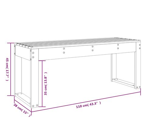 Bancă de grădină, alb, 110x38x45 cm, lemn masiv de pin