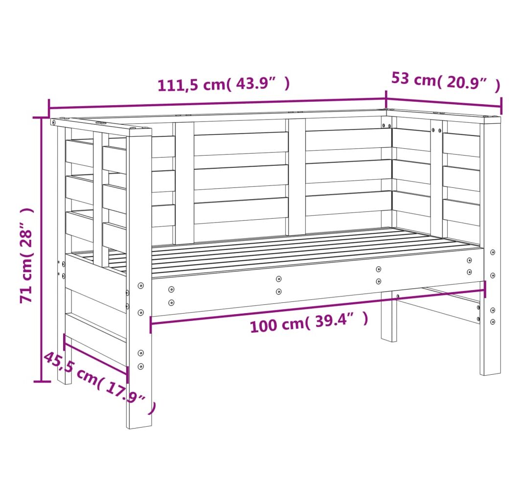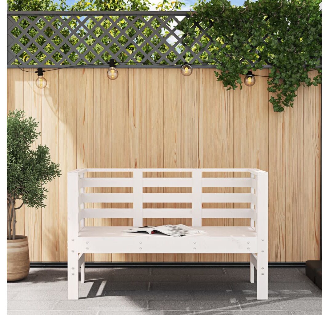 Bancă de grădină, alb, 111,5x53x71 cm, lemn masiv de pin