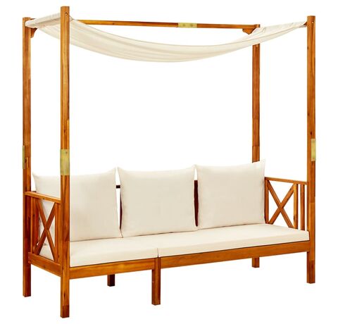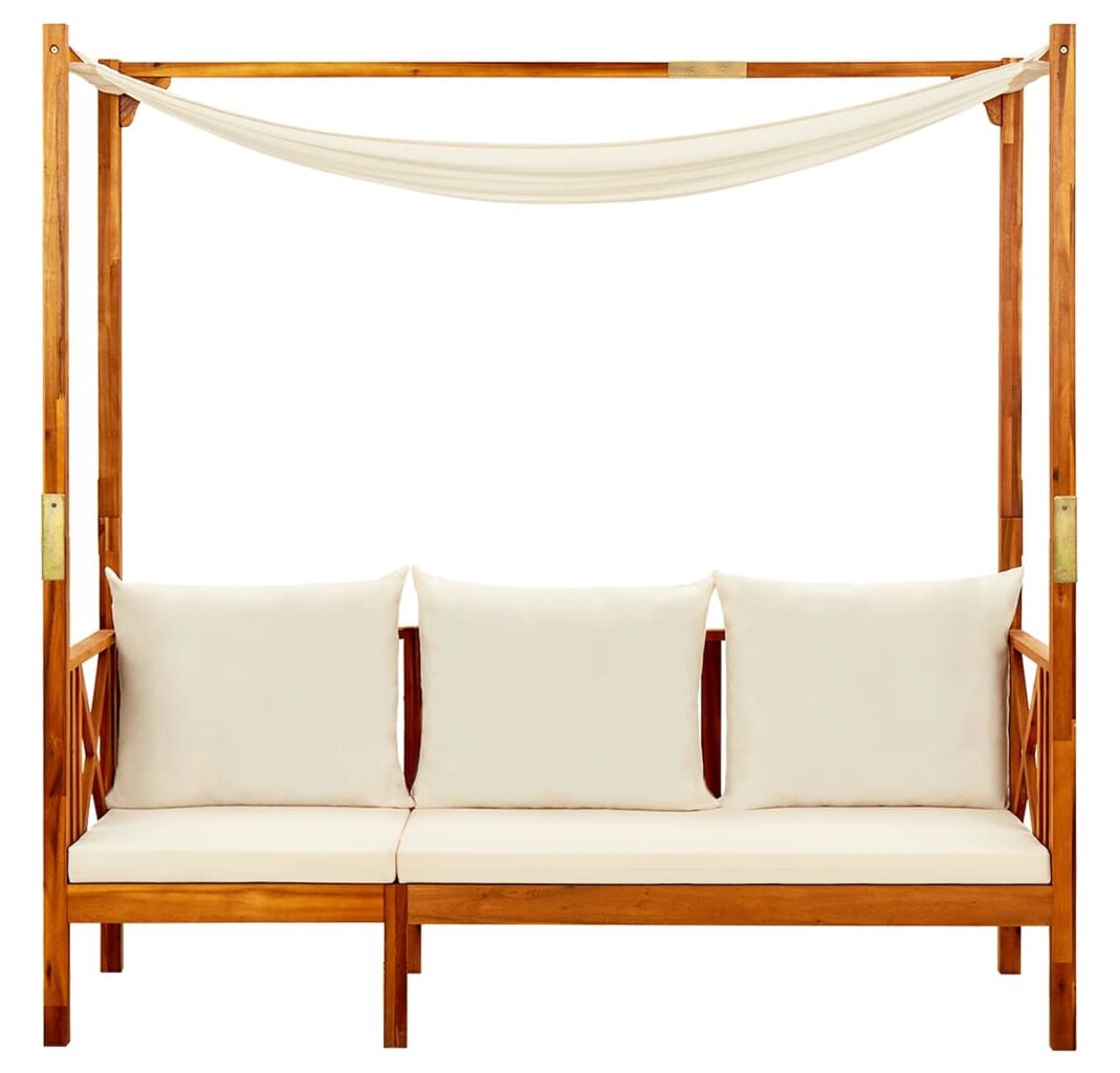 Fabricat din lemn masiv de acacia cu finisaj de ulei, patul de zi este rezistent la intemperii, foarte durabil și ușor de curățat cu o cârpă umedă. Setul conţine 2 taburete, fiind o alegere excelentă pentru a vă relaxa şi a vă bucura de vreme, a trage un pui de somn sau pentru a discuta cu familia sau prietenii. În plus, perna inclusă este mai mult decât un plus practic; are şi funcţie decorativă.
