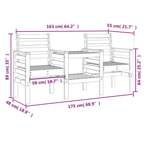 Bucurați-vă de seri romantice pe această bancă de grădină cu masă de ceai integrată pentru pahare de vin, gustări sau cafea.