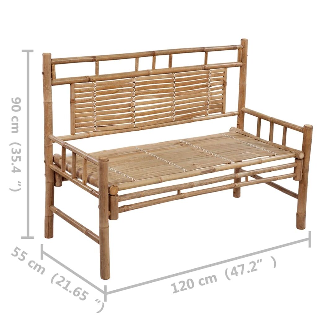 Banca de exterior este proiectată cu spătar, fiind confortabilă pentru lectură sau odihnă. Realizată din bambus rezistent la intemperii și impermeabil, banca de grădină este durabilă și stabilă. De asemenea, este ușor de curățat cu o cârpă umedă. Mai mult, perna inclusă oferă un plus de confort în timpul relaxării. Este fabricată din poliester 100%, care a fost tratat pentru a fi impermeabil. Fiecare pernă are două seturi de sfori, pentru o fixare mai bună pe bancă.