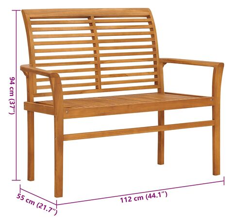 Bancă de grădină, cu pernă gri taupe, 112 cm, lemn masiv de tec