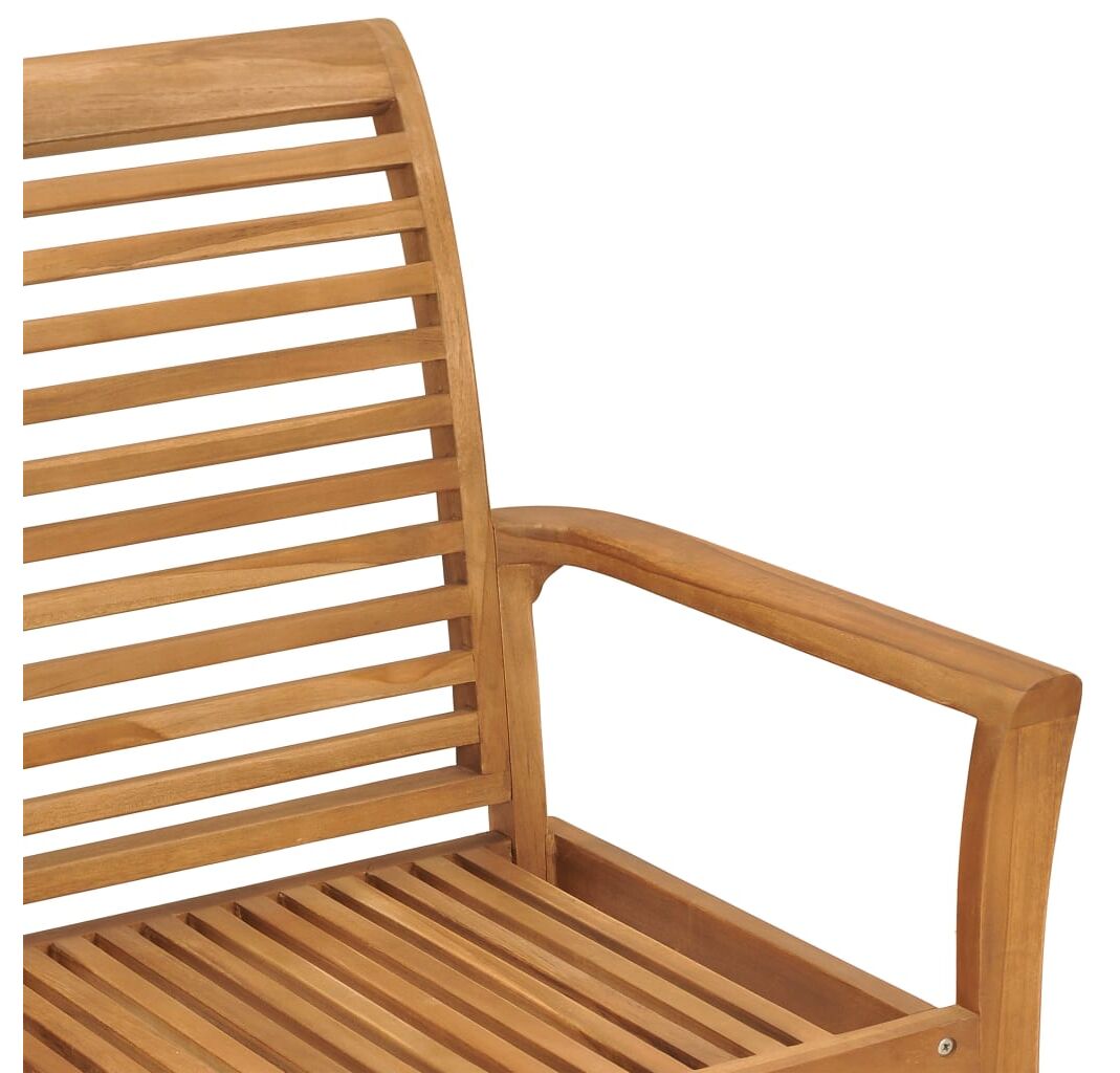 Construită din lemn de tec de esenţă tare extrem de rezistent, această piesă de mobilier din tec a fost asezonată, uscată la cuptor și apoi șlefuită fin pentru un aspect foarte neted. Lemnul de tec este cunoscut pentru durabilitatea excepțională și rezistența la intemperii, fiind mult mai potrivit pentru mobilierul de grădină decât orice alt tip de lemn. Lemnul de tec este alegerea perfectă dacă doriți să achiziționați o piesă de mobilier de grădină care să reziste în timp.