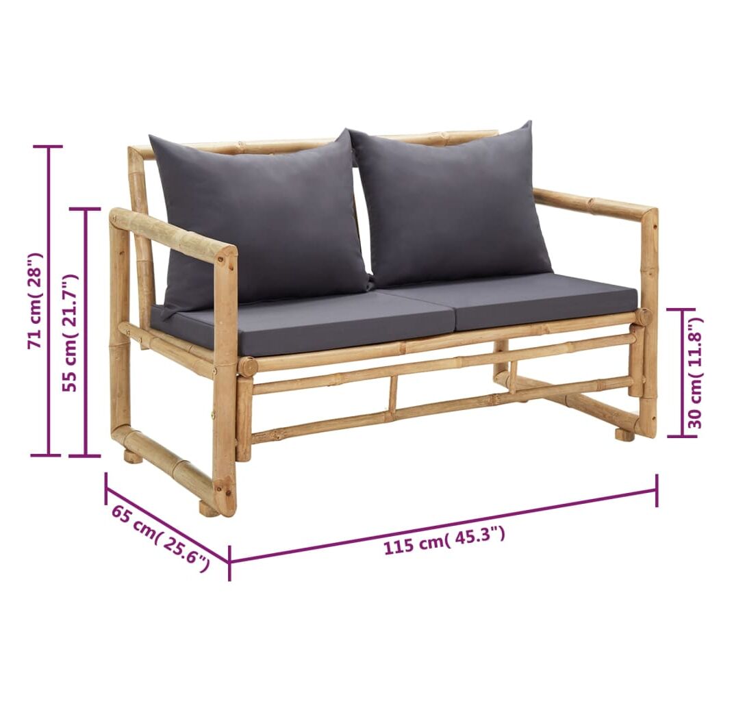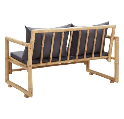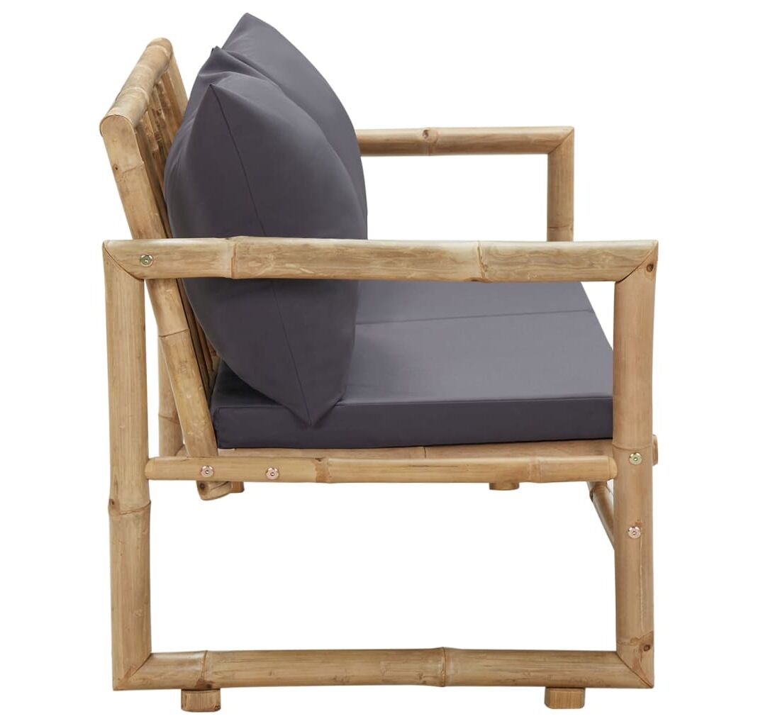Această bancă este fabricată din bambus, fiind robustă și ușor de curățat. Șezutul și spătarul cu șipci oferă un sprijin excelent. În plus, pernele căptușite aduc un plus de confort. Banca cu aspect natural va adăuga o caracteristică rustică grădinii dvs. sau oricărui alt spațiu de exterior.
