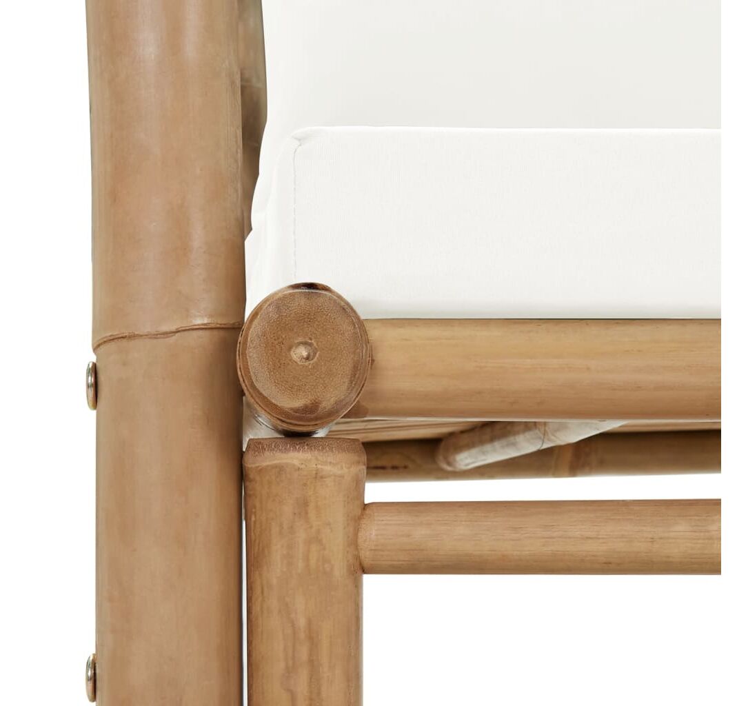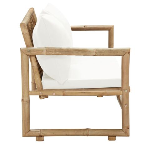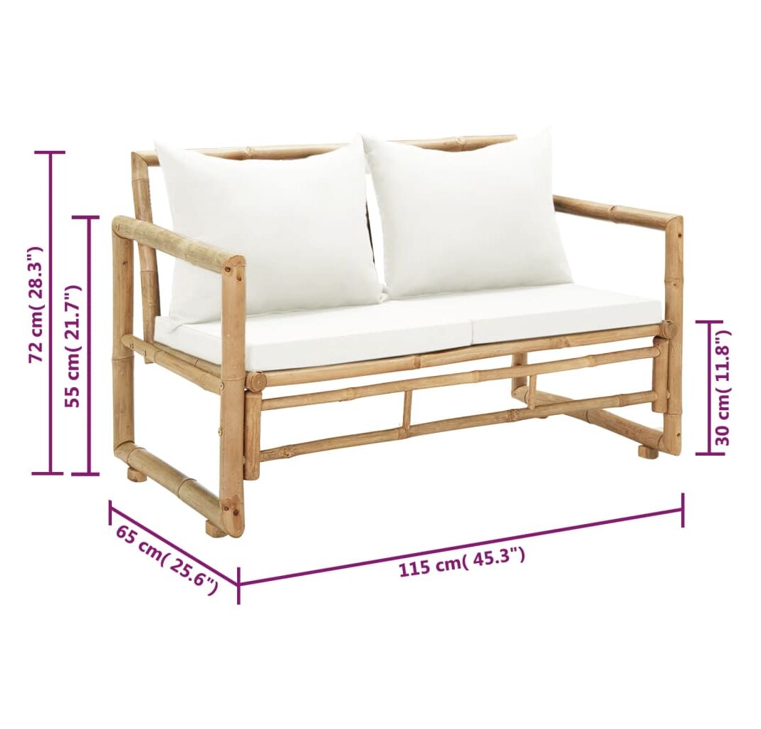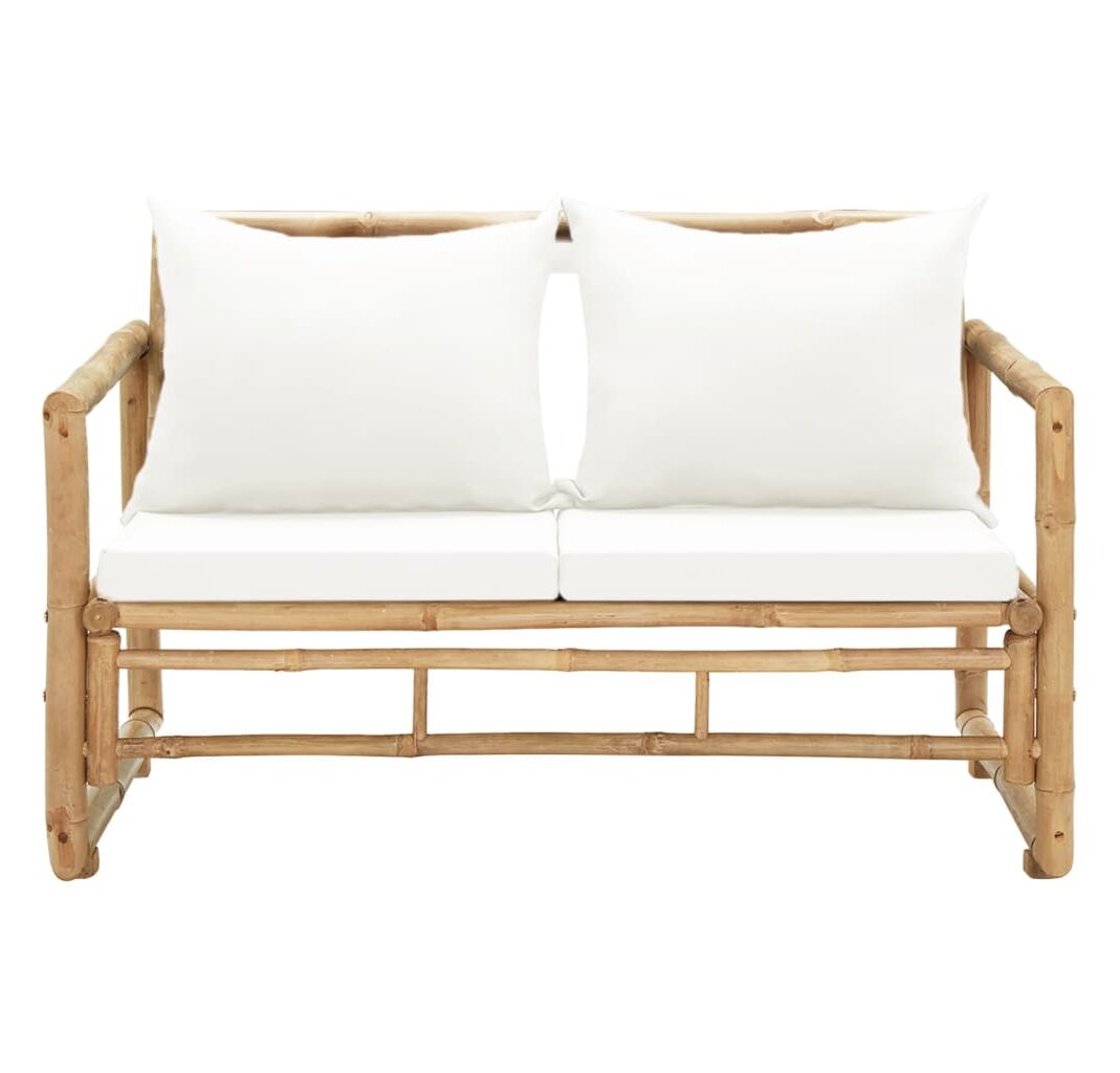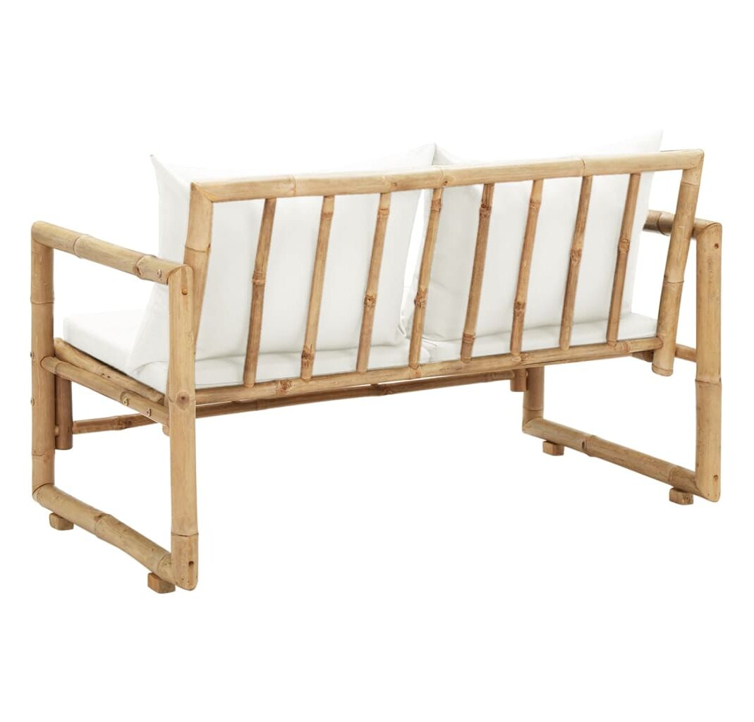 Această bancă este fabricată din bambus, fiind robustă și ușor de curățat. Șezutul și spătarul cu șipci oferă un sprijin excelent. În plus, pernele căptușite aduc un plus de confort. Banca cu aspect natural va adăuga o caracteristică rustică grădinii dvs. sau oricărui alt spațiu de exterior.