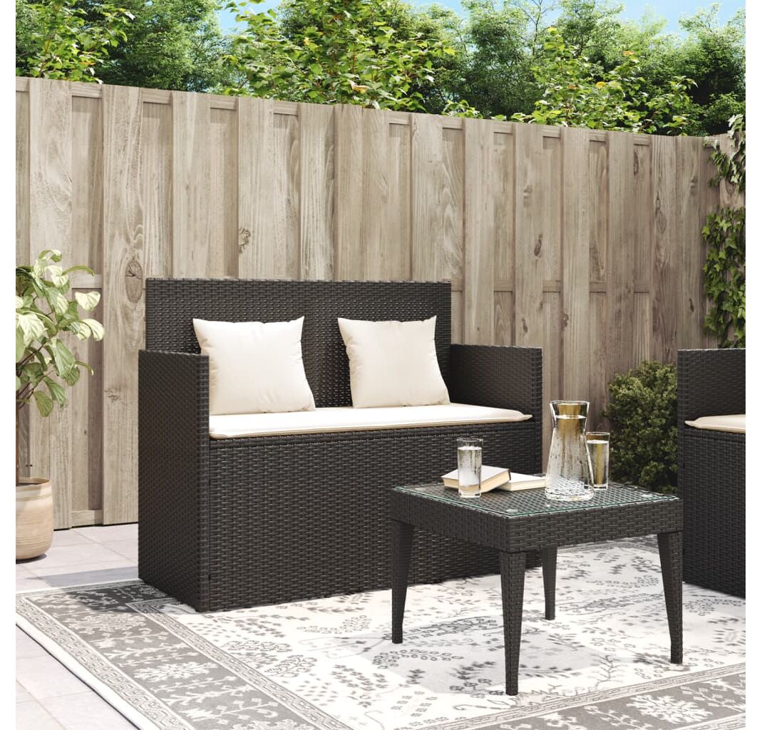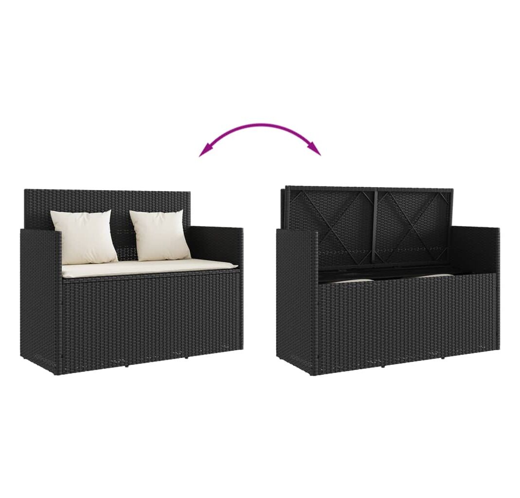 Cantitatea minima pentru "Bancă de grădină cu perne, negru, poliratan" este 1.