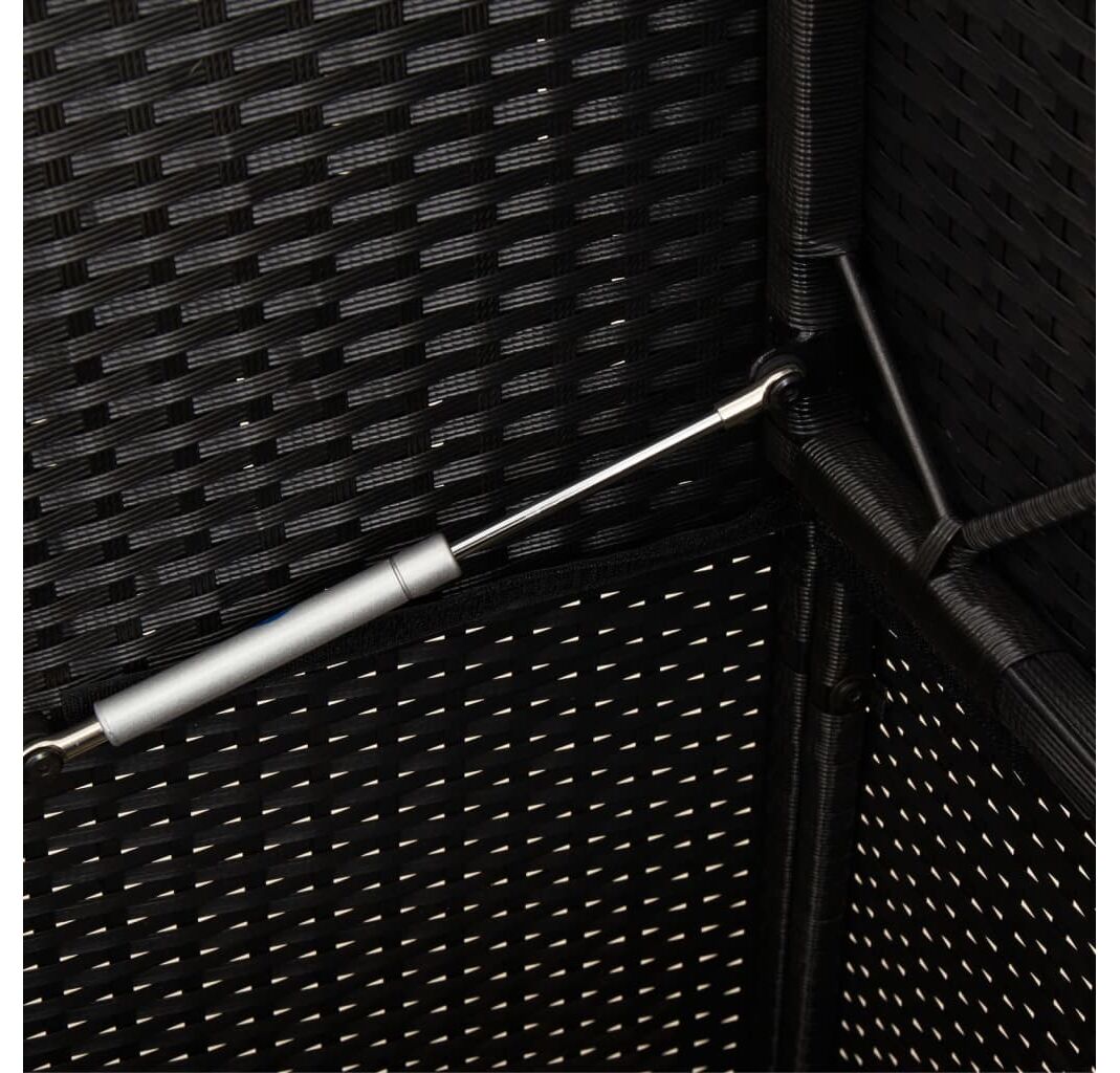 • Funcție de depozitare cu geantă rezistentă la apă: Mobilierul de grădină dispune de spațiu de depozitare sub scaun, dotat cu o geantă rezistentă la apă pentru depozitarea pernelor, jucăriilor și a altor articole. Sacul interior poate fi prins în siguranță de mobilierul de exterior cu elemente de fixare cu bandă autoadezivă cu arici pentru o stabilitate sporită.