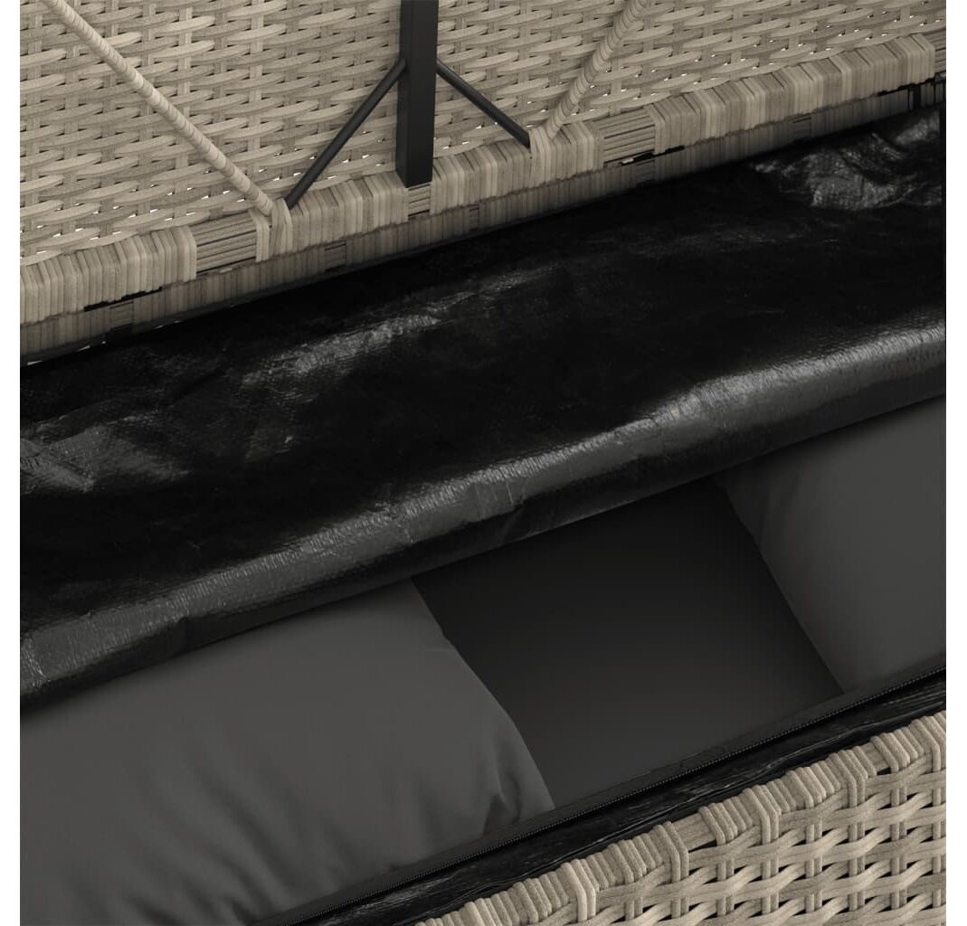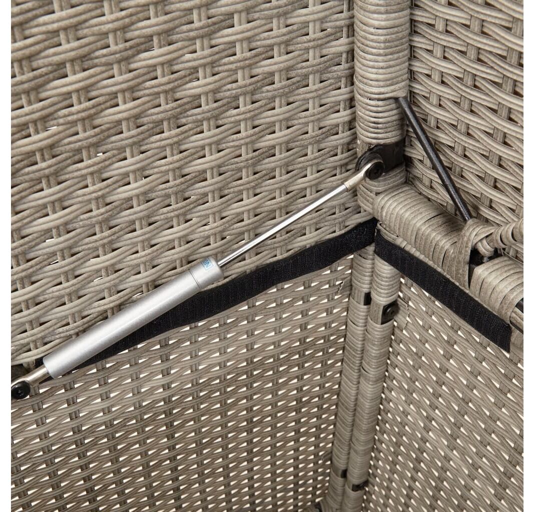 - Funcție de depozitare cu geantă rezistentă la apă: Mobilierul de grădină dispune de spațiu de depozitare sub scaun, dotat cu o geantă rezistentă la apă pentru depozitarea pernelor, jucăriilor și a altor articole. Sacul interior poate fi prins în siguranță de mobilierul de exterior cu elemente de fixare cu bandă autoadezivă cu arici pentru o stabilitate sporită.