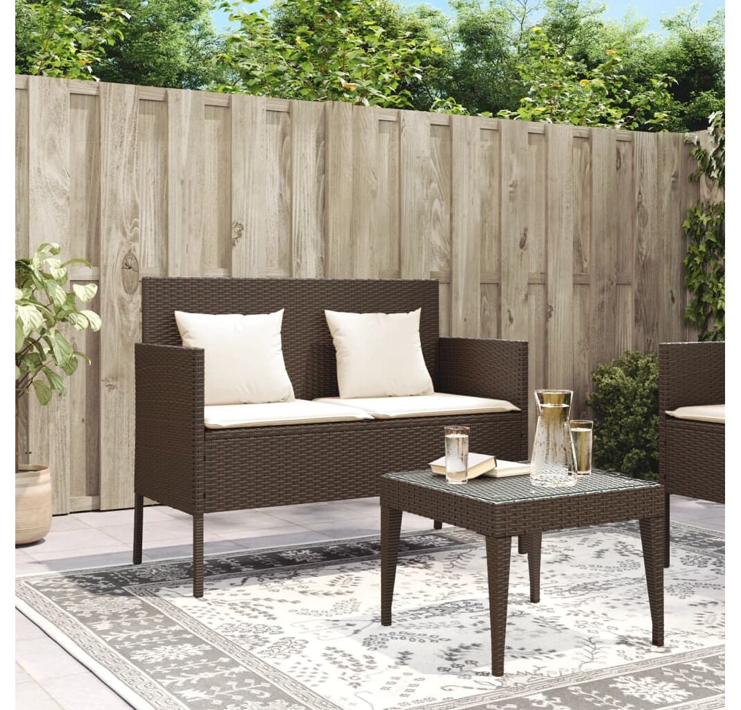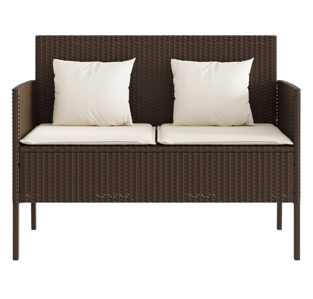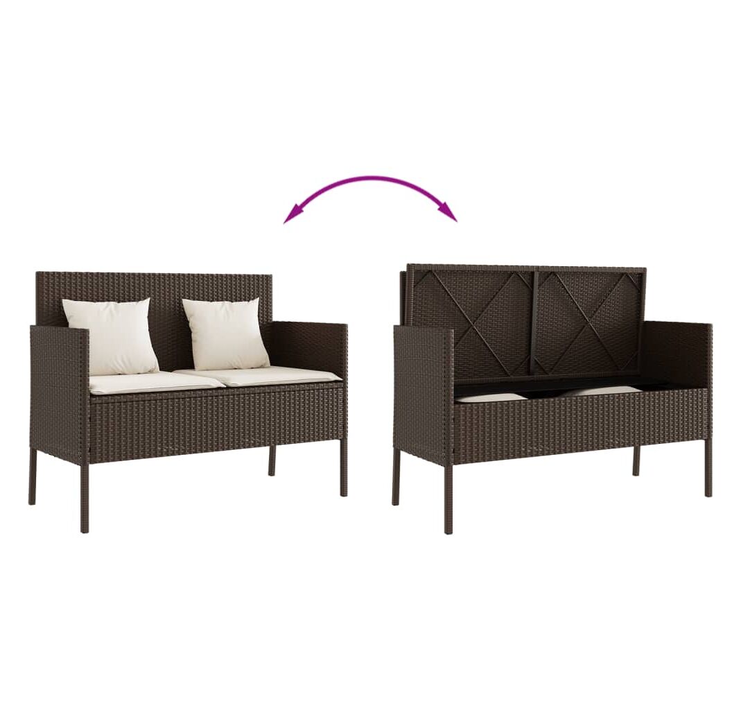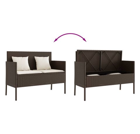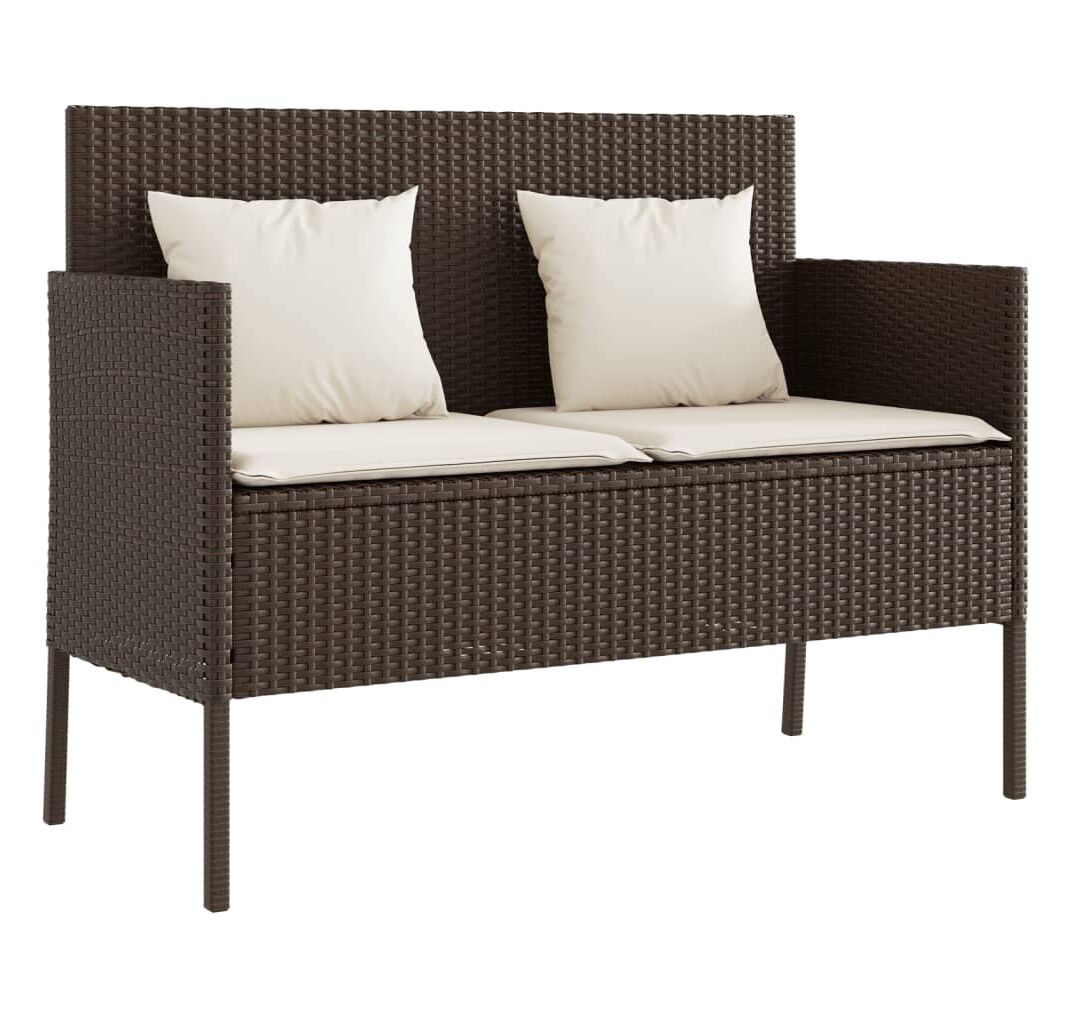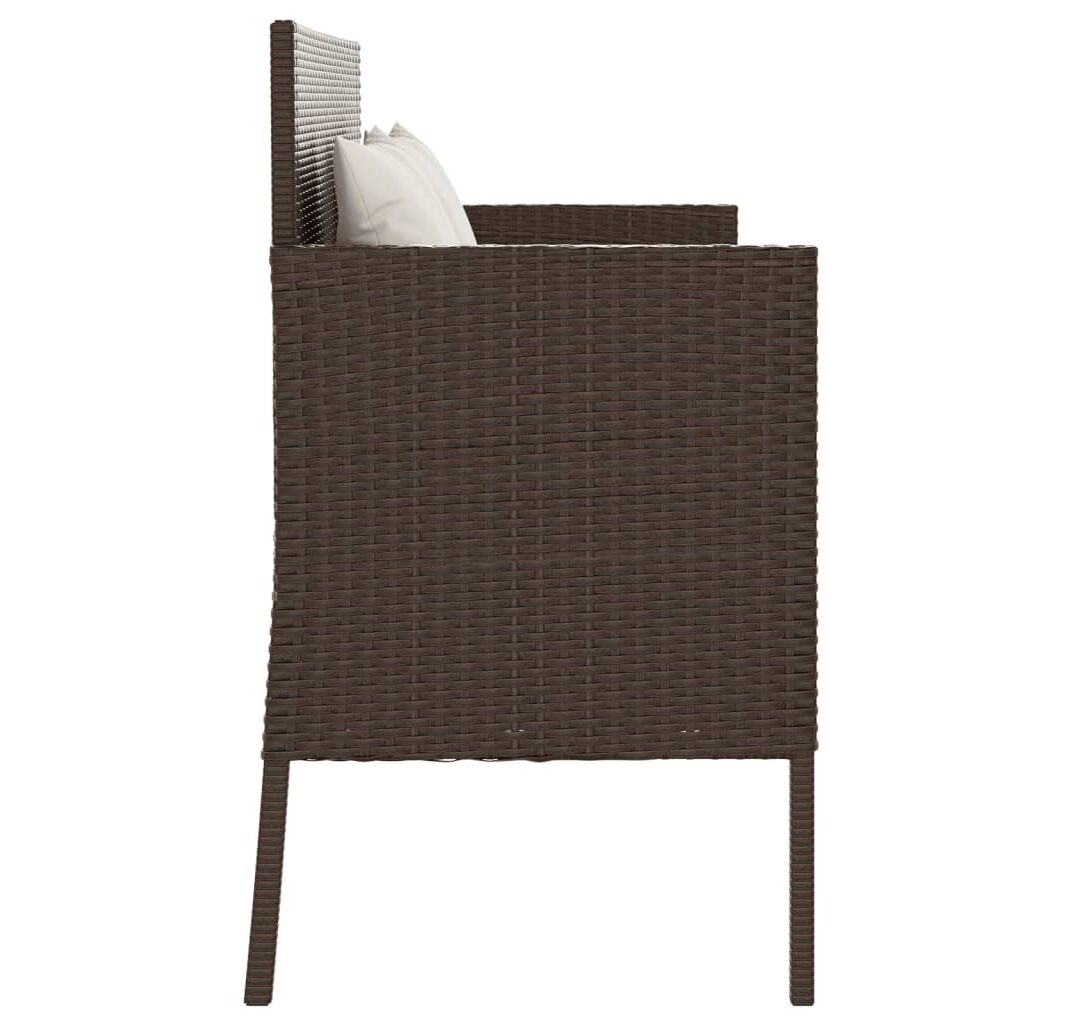 Bancă de grădină cu pernă, maro, poliratan