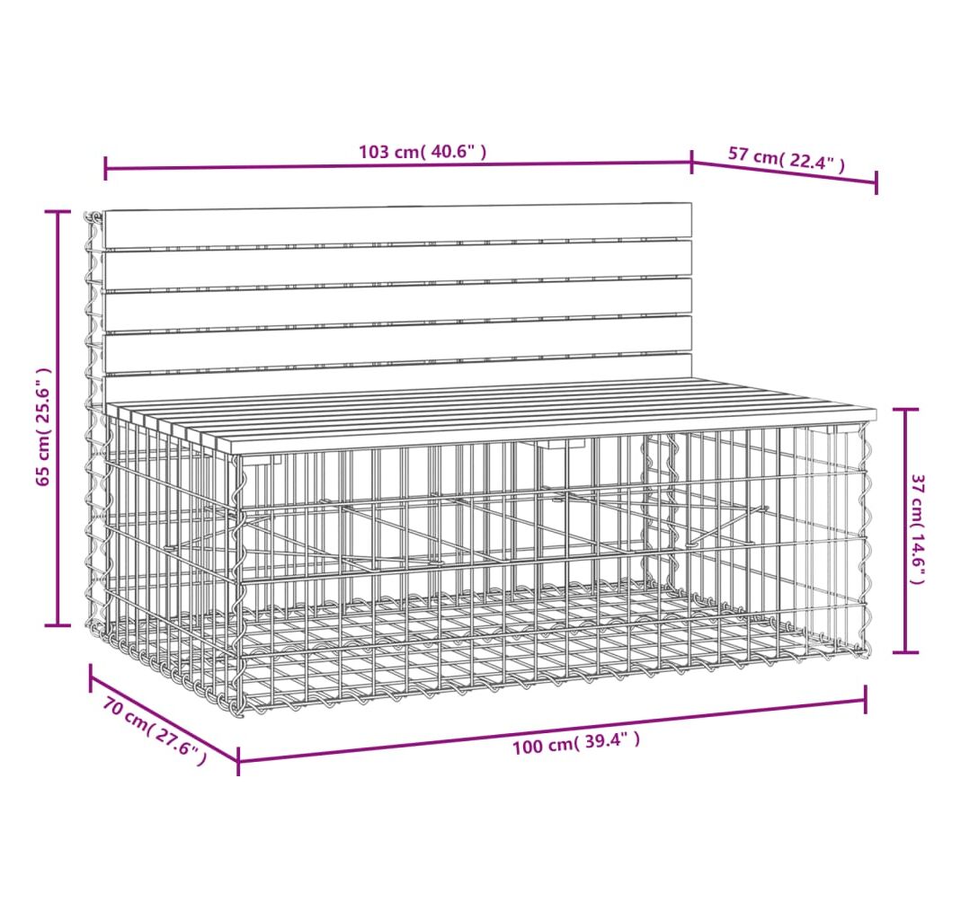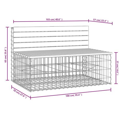 Bancă grădină, design gabion, 103x70x65 cm, lemn pin impregnat