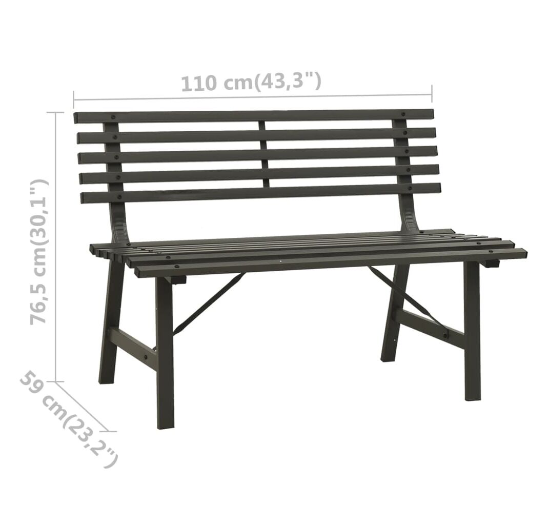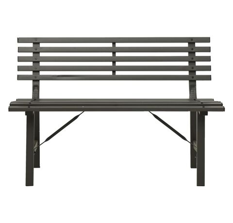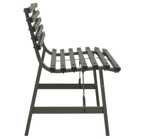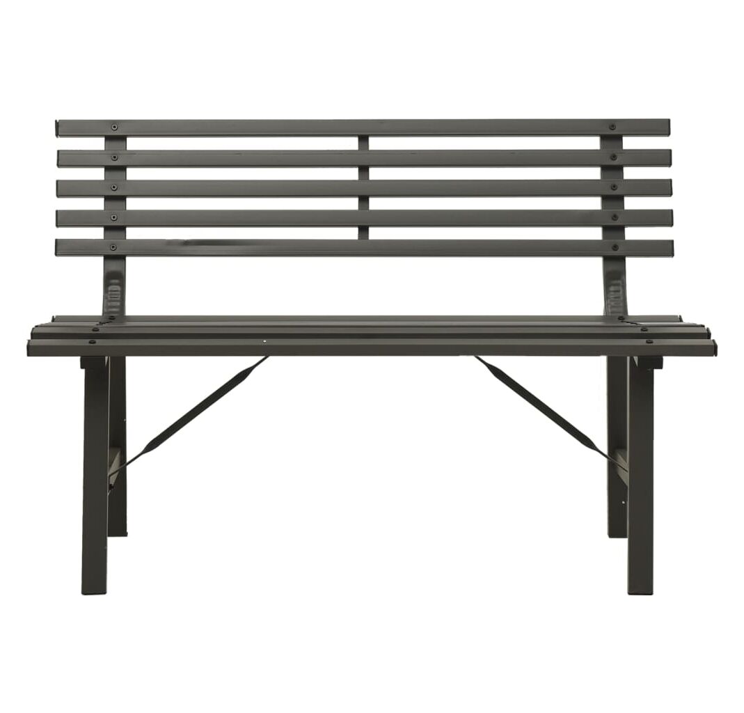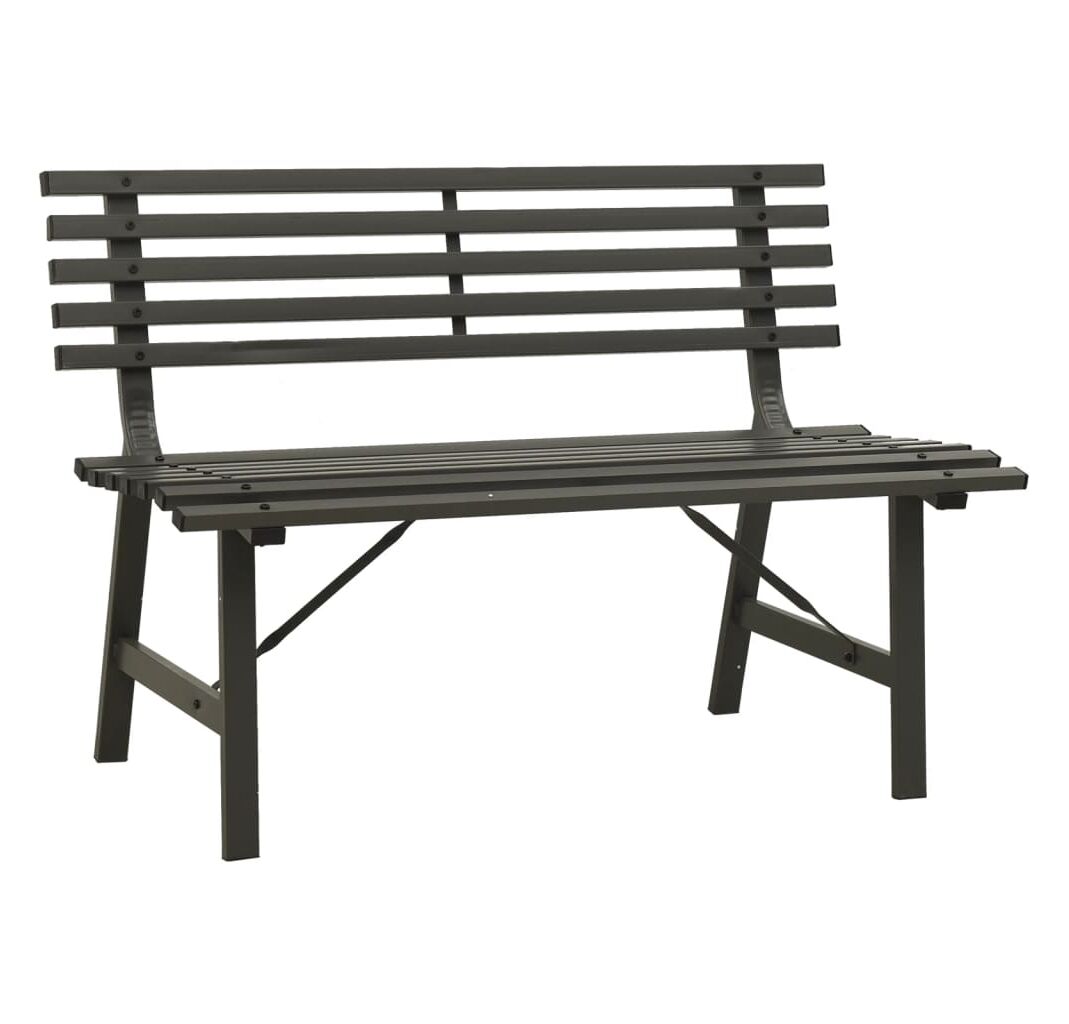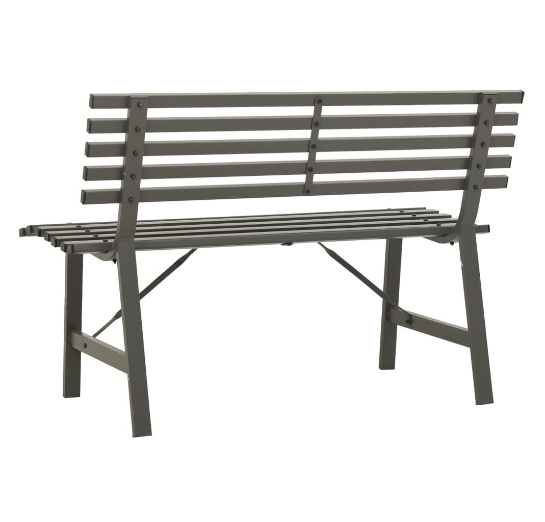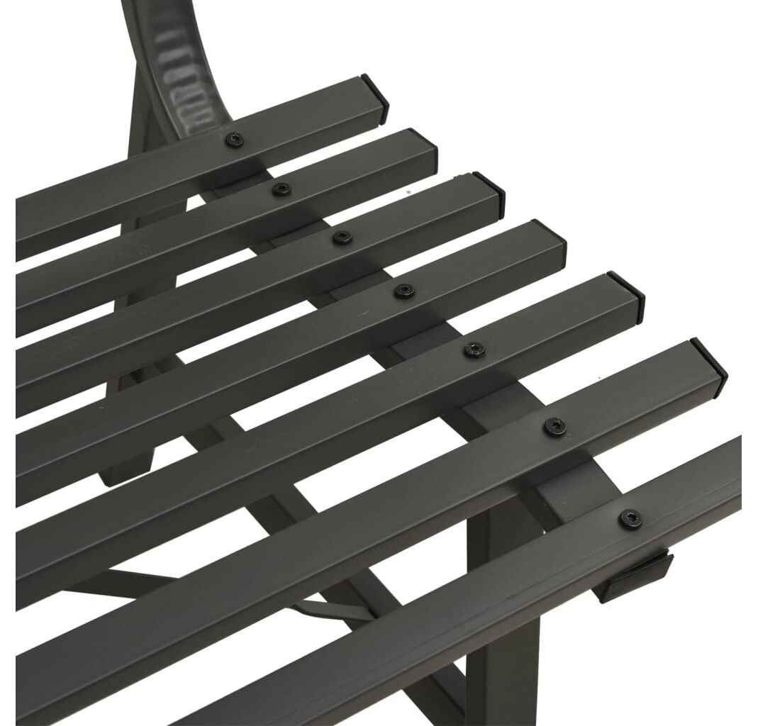 Fiind fabricată din oțel vopsit electrostatic, această bancă de grădină este rezistentă la intemperii și foarte durabilă. Spătarul cu șipci adaugă, de asemenea, un accent elegant oricărei grădini sau terase.