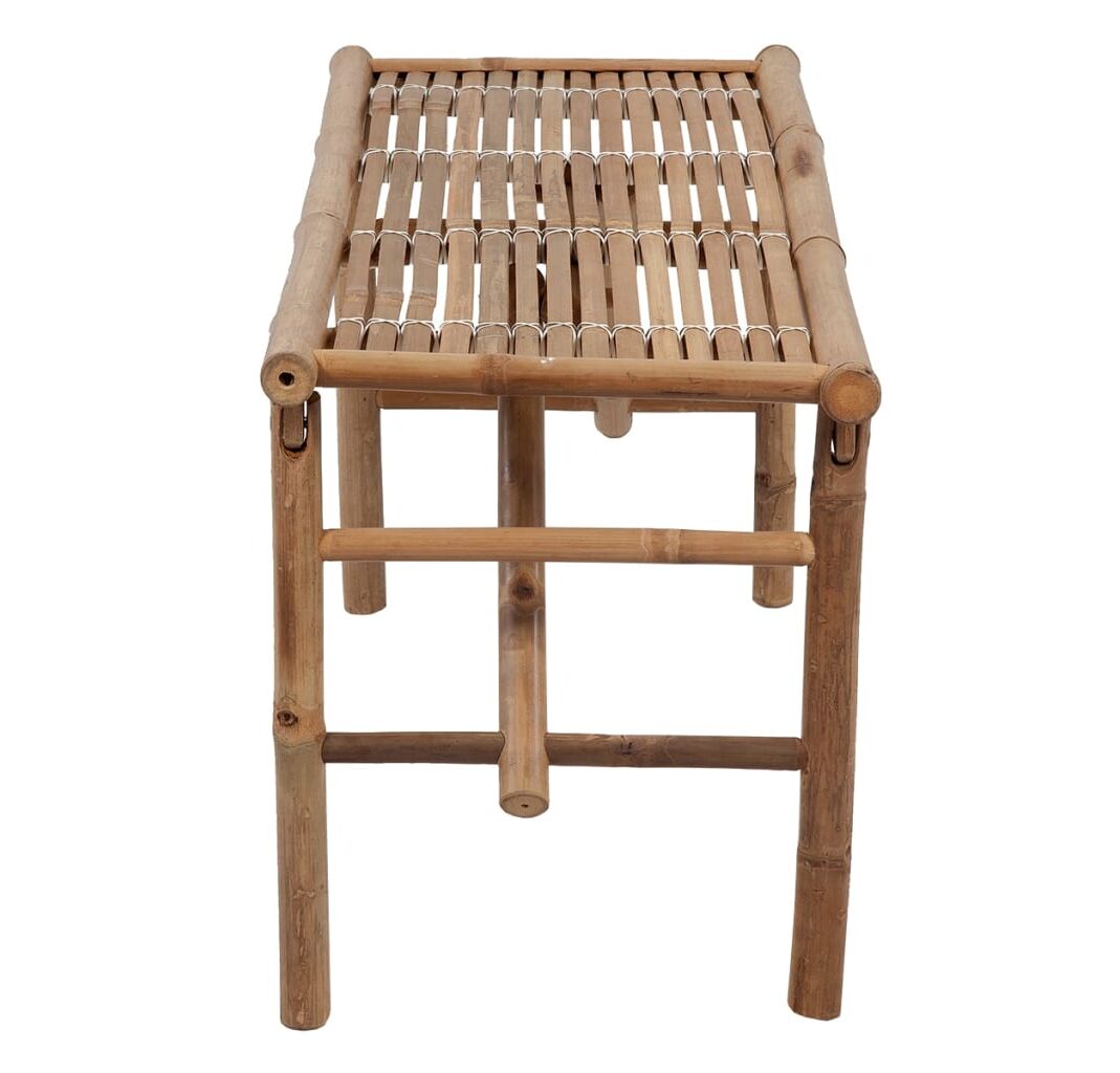 Banca de exterior este pliabilă și astfel portabilă, putând fi ușor depozitată sau montată. Realizată din bambus rezistent la intemperii și la apă, banca de grădină este durabilă și stabilă. De asemenea, este ușor de curățat cu o cârpă umedă. Mai mult, perna inclusă oferă un plus de confort în timpul relaxării. Este fabricată din poliester 100%, care a fost tratat pentru a deveni impermeabil. Fiecare pernă are două seturi de sfori, pentru o fixare mai bună pe bancă.
